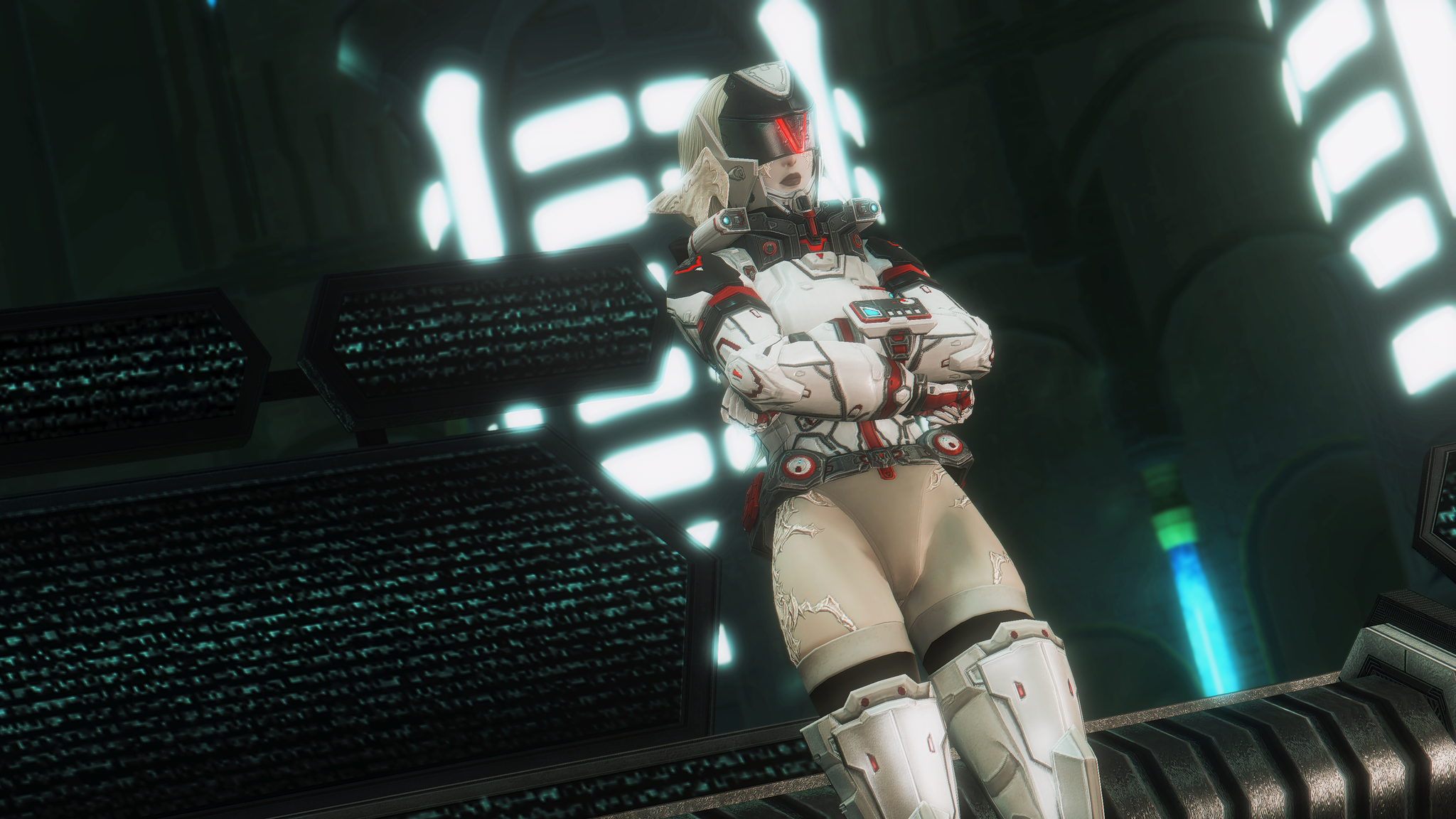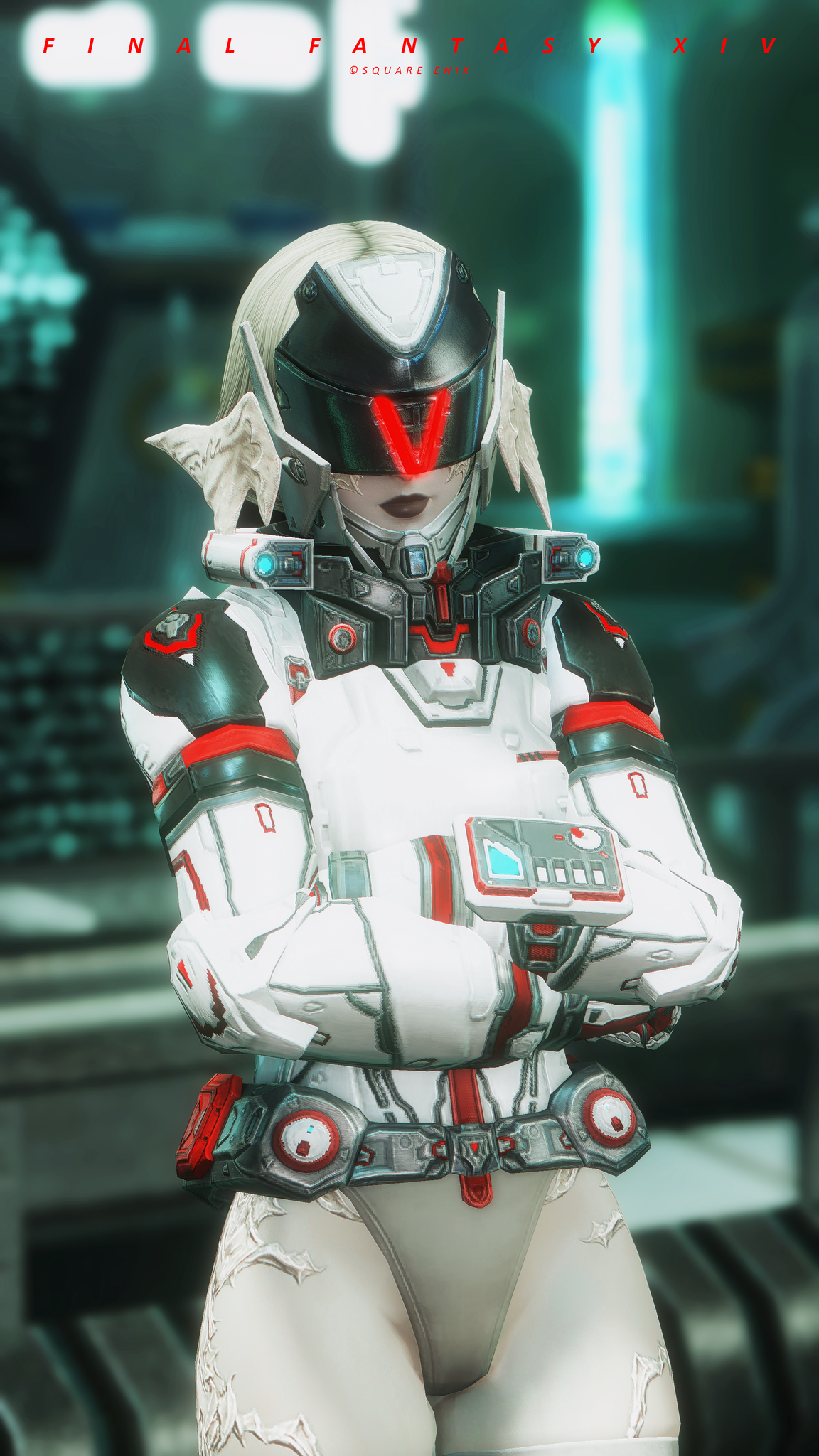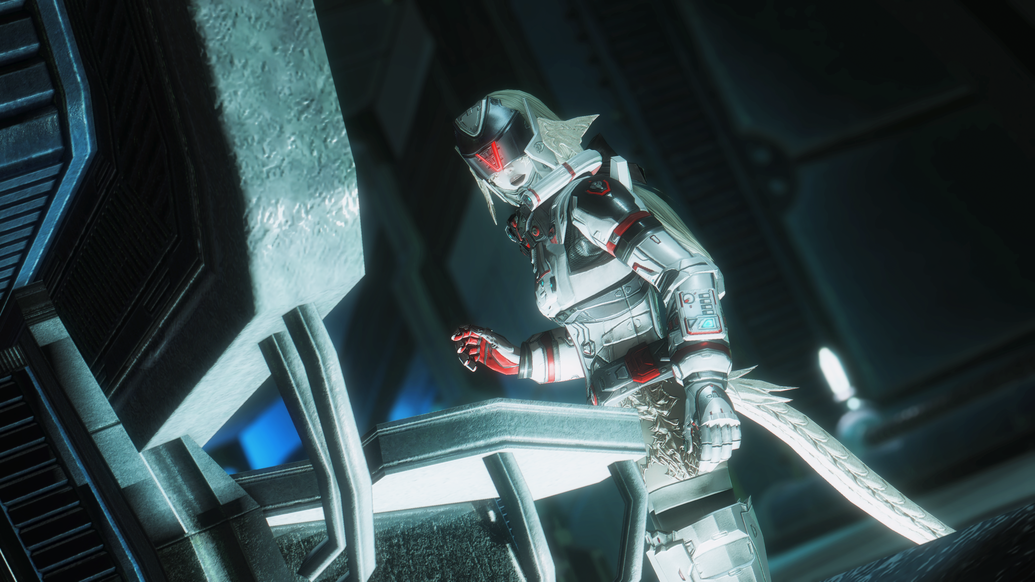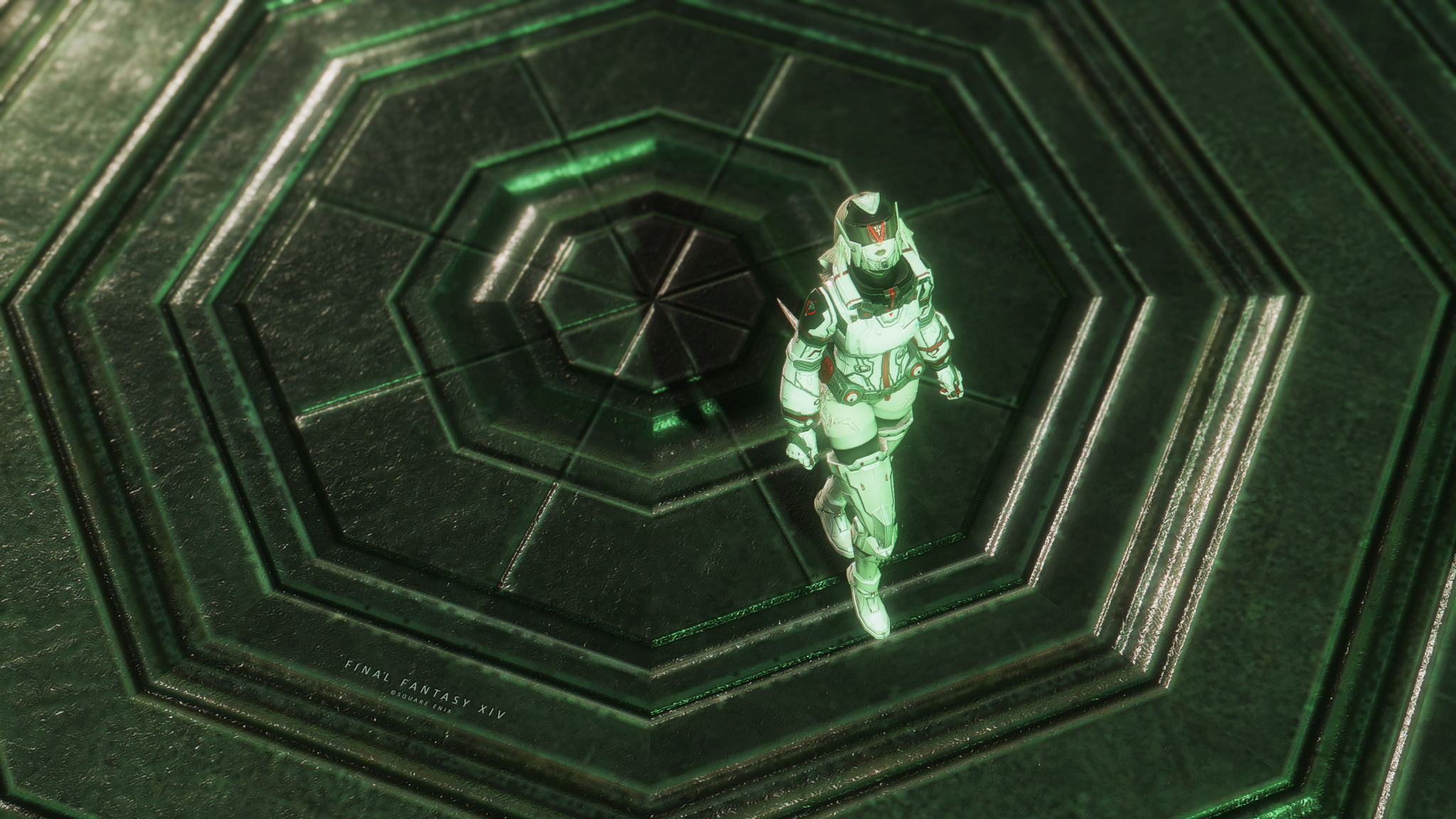 又配了新衣服!因為主線還在6.0沒有七版那種fancy fancy超現代的地方能去,隨便從5版副本開了一個看起來也算高科技的地點拍一拍,邊拍邊想到如果空中漂浮一些爛肉屍體......就好像