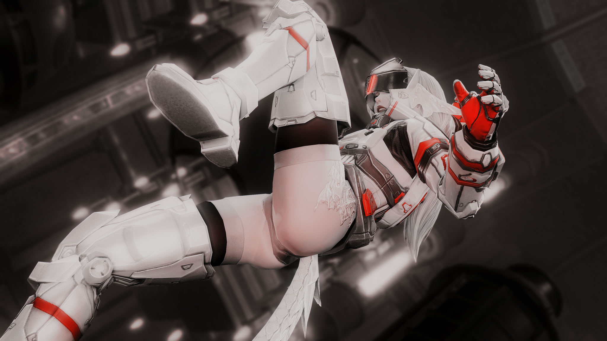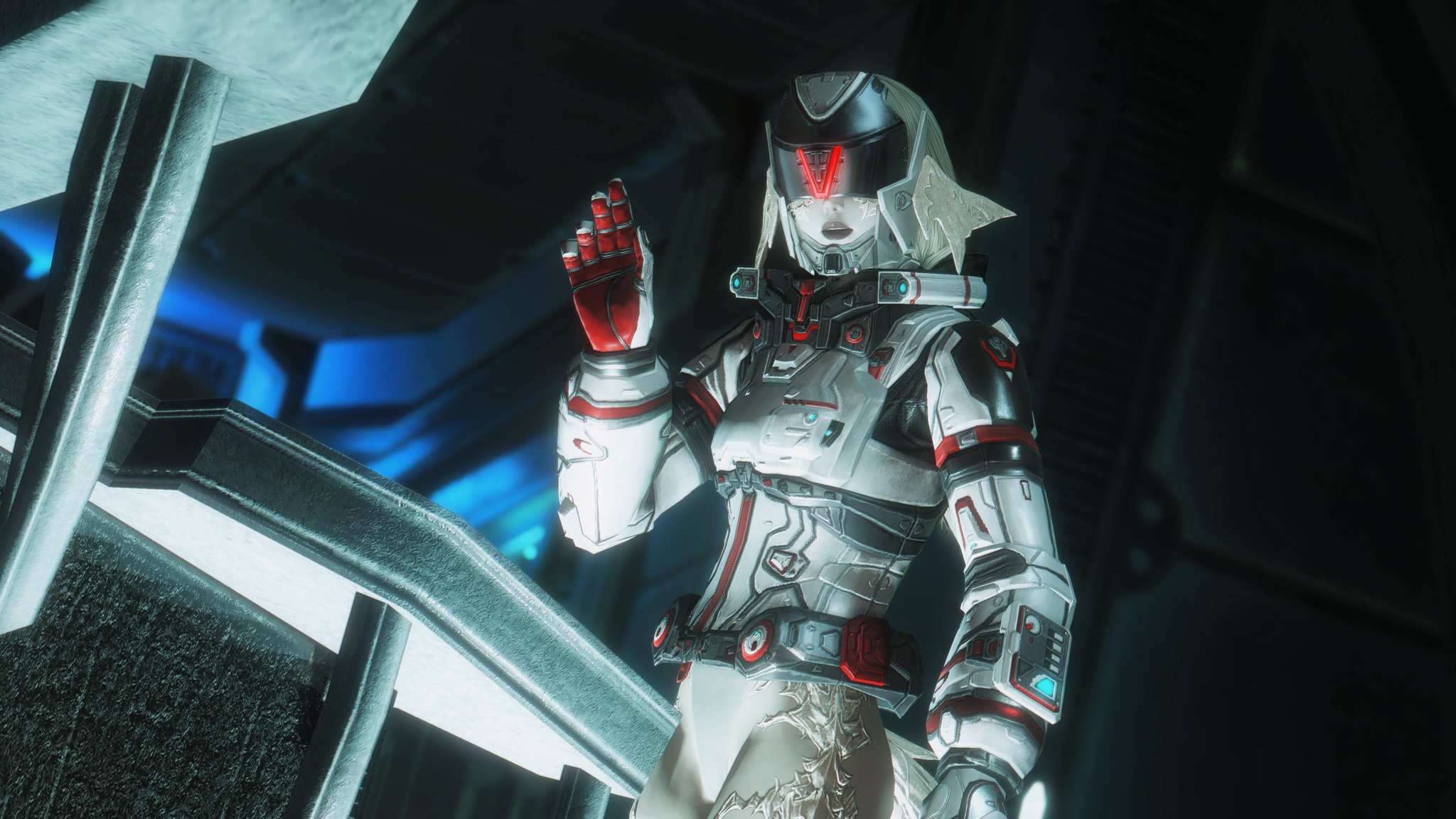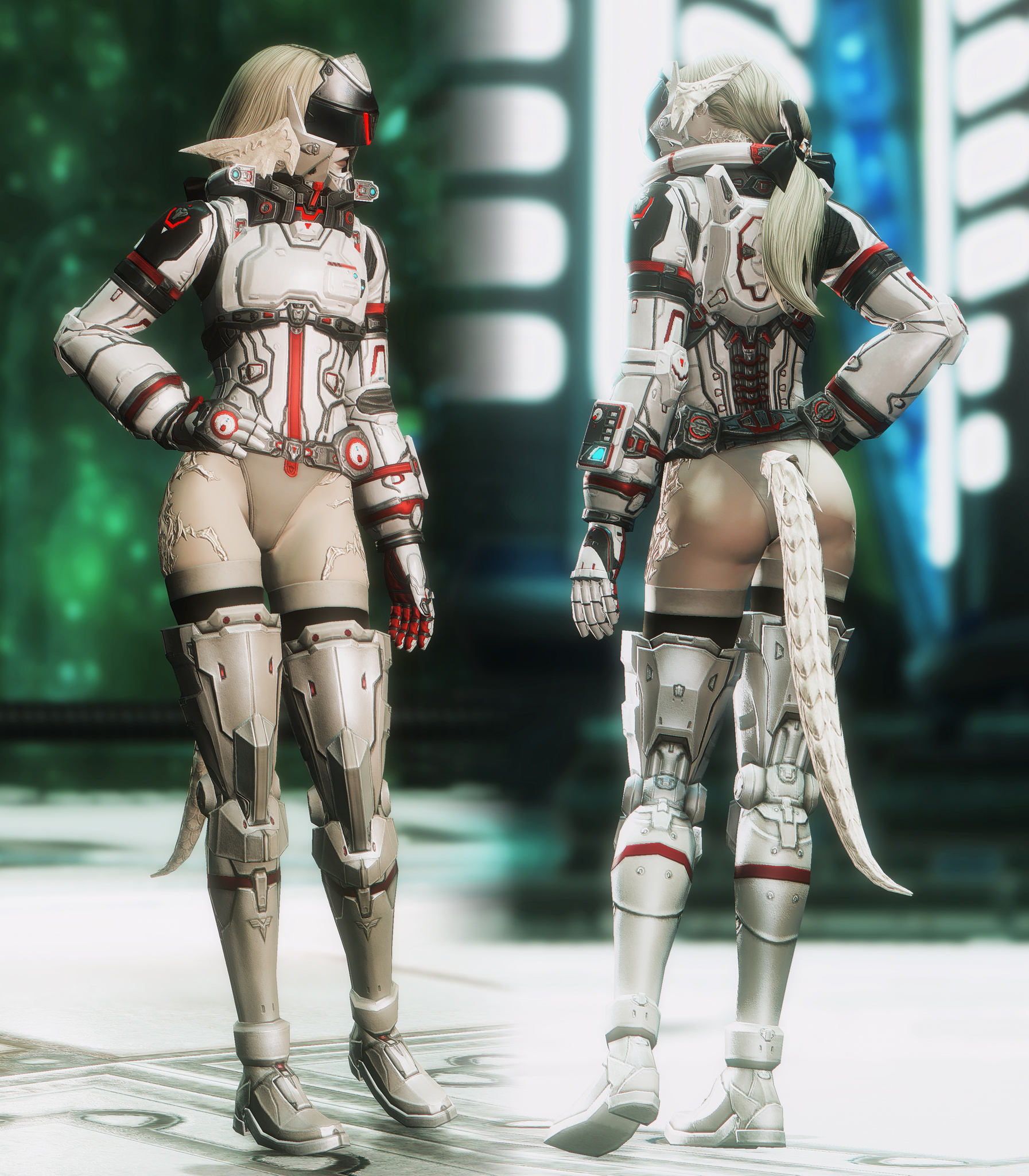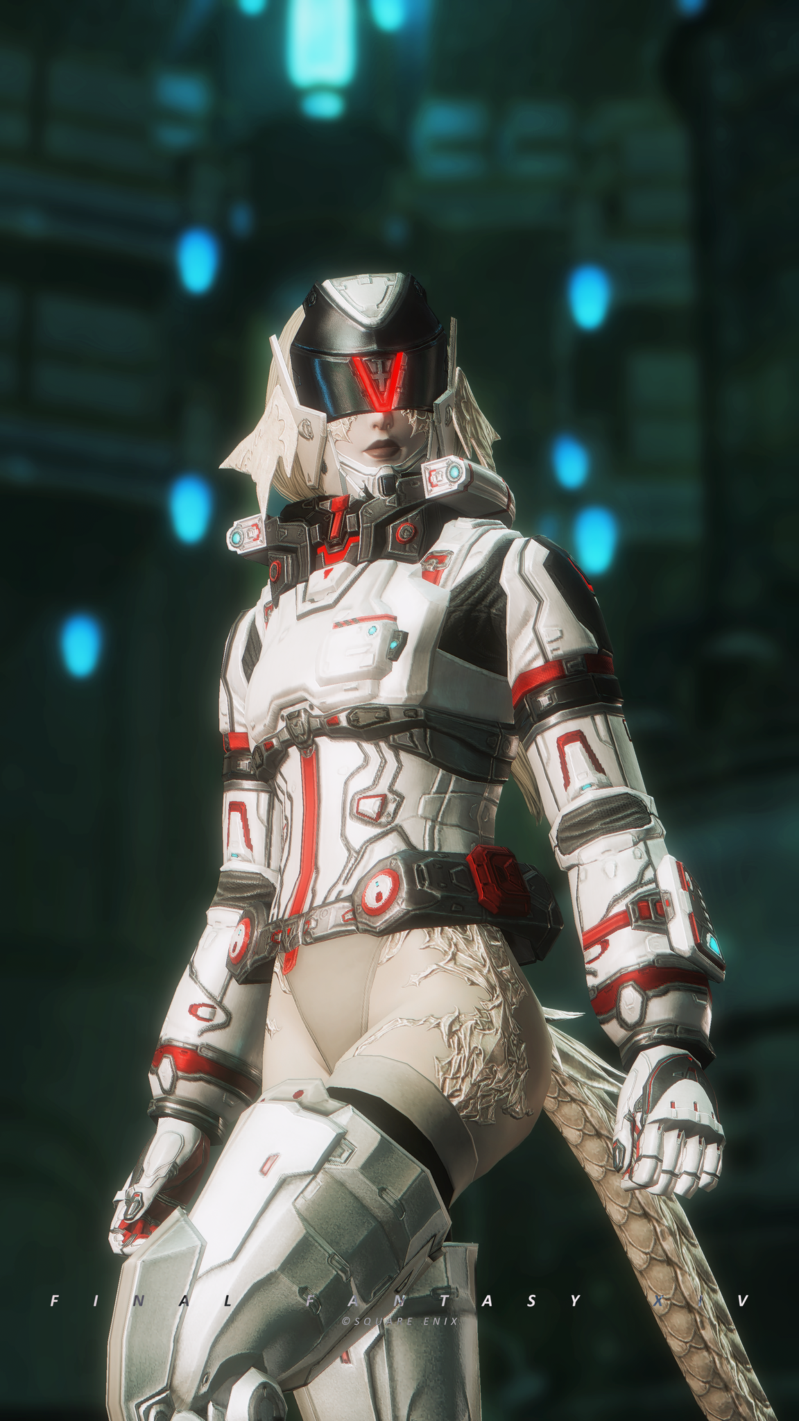 又配了新衣服!因為主線還在6.0沒有七版那種fancy fancy超現代的地方能去,隨便從5版副本開了一個看起來也算高科技的地點拍一拍,邊拍邊想到如果空中漂浮一些爛肉屍體......就好像