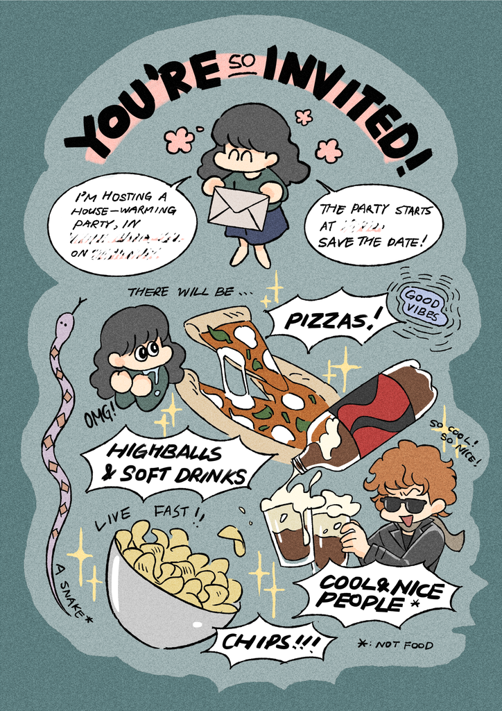 畫了喬遷派對的邀請卡,要同時邀請工作夥伴/客戶與朋友到同一個場合真的好可怕。