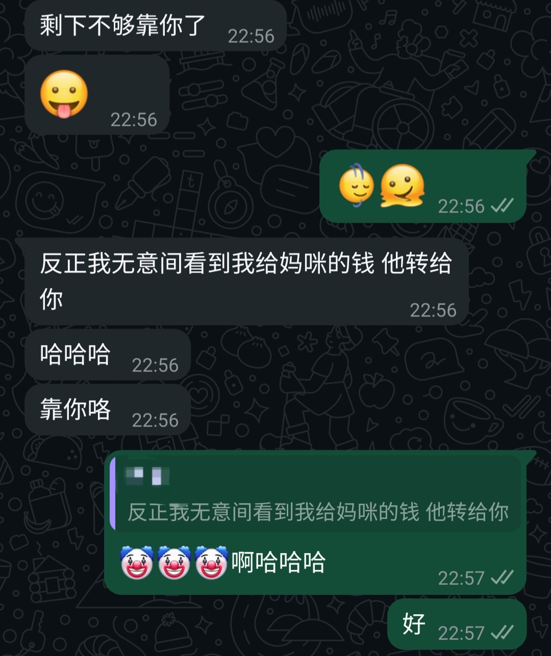我媽也沒有很常轉錢給我啦一年大概一兩次 就回去過年回來前會有