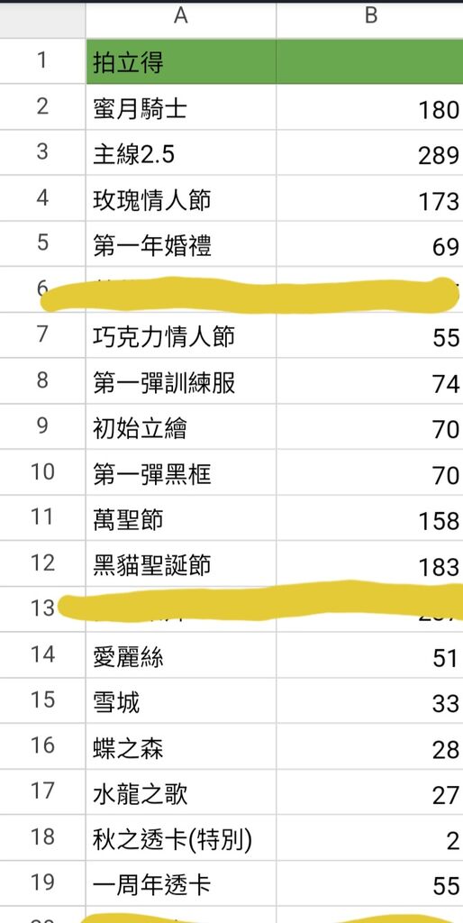 圖中為統計數量事先用筆畫掉的就是不出