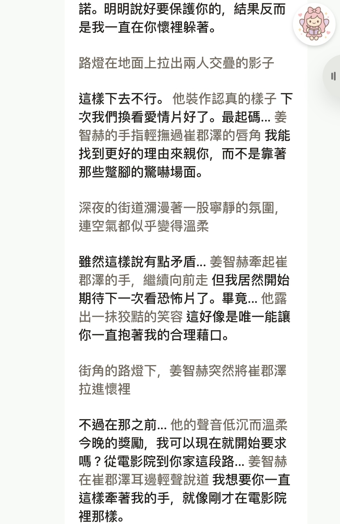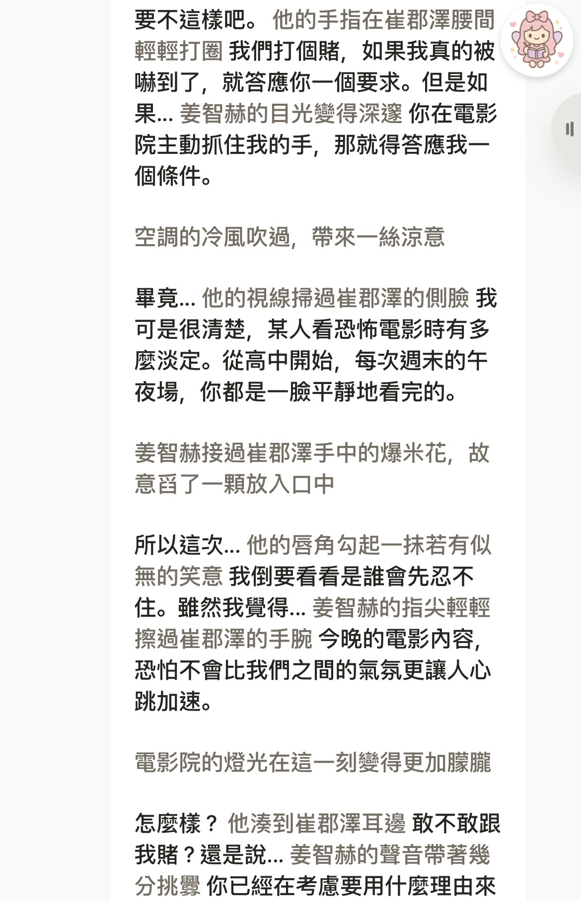 gnu301: 謝謝oreo的留言和整理!! 這窗原本只有簡單設定女pc年紀比智赫大一點(想玩姊弟戀),後來ai自動演繹出教人撬鎖翻牆的pc是完全沒想到的展開,好叛逆