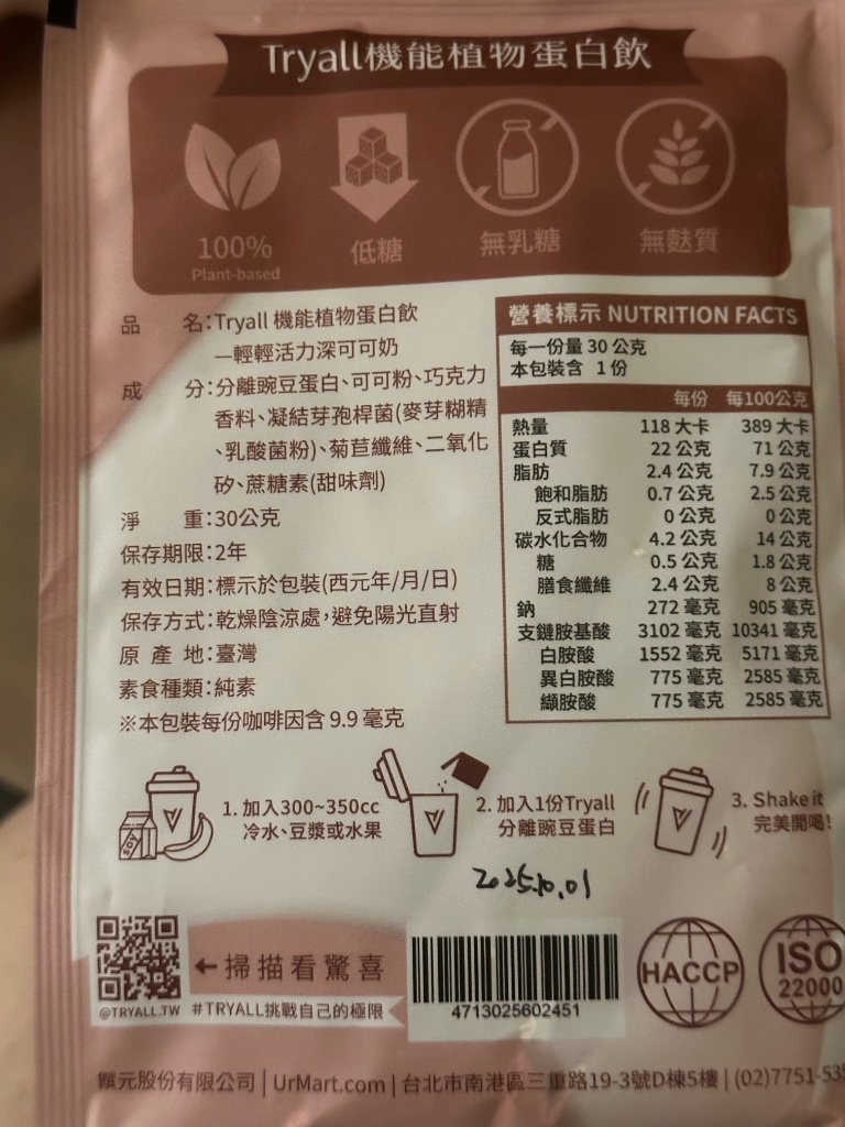 對了我買了上次你推的蛋白粉,有點甜不過鐵觀音口味不錯耶!可以認真來攝取蛋白質了