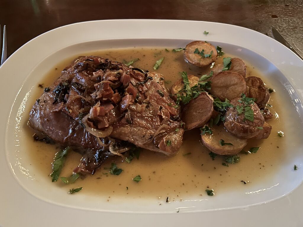 然後下一道是saltimbocca,意思是「(因為太好吃所以)跳進你的嘴」