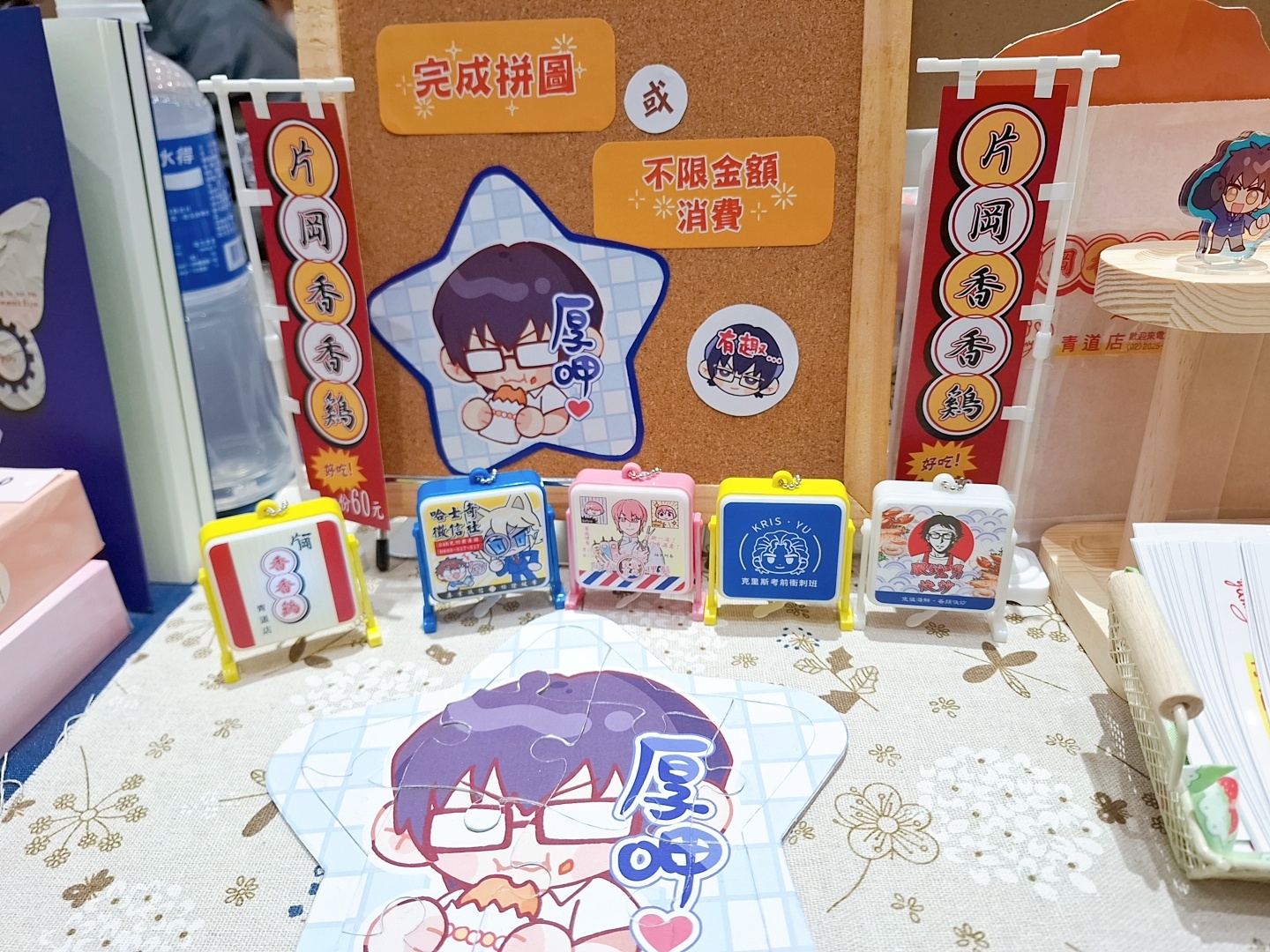 商品用雞排紙袋裝真的太可愛了我拿了好多雞排店貼紙我要到處貼!舜臣吃雞排拼圖也超萌的對ㄚ台灣人舜臣一定有吃過雞排還要喝珍奶吧