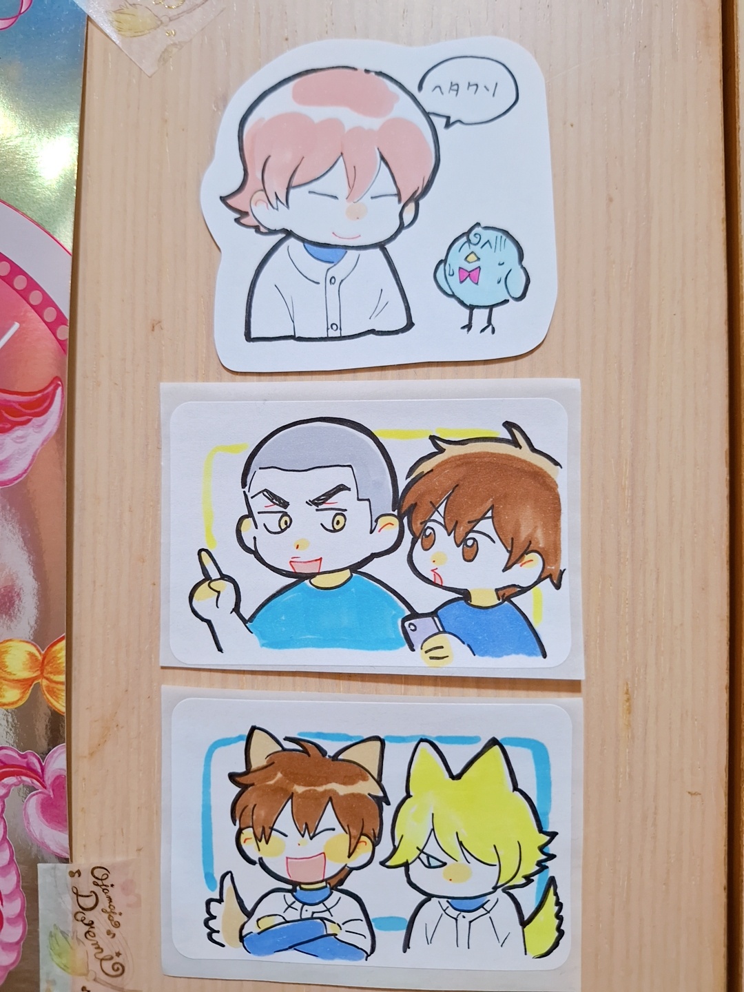 已經把威尼老闆手繪貼紙更新到牆上了好快樂,底下兩張天久澤村跟哈士奇柴柴都是以前場次委託老闆現點現做畫的我是大爽人