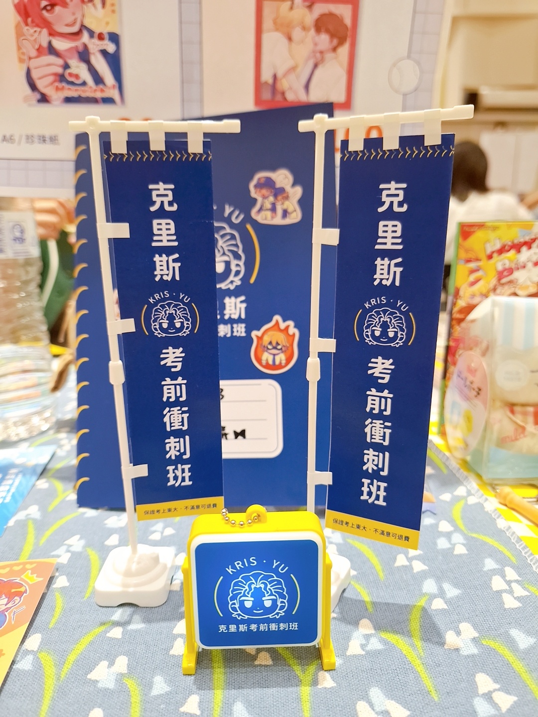 當天的攤位照!新品明信片是餐館主題就趁機帶了平常收藏的餐館小玩具來布置,那三顆果凍剛好是小春澤村降谷的顏色💗💛💙(布置TMI)