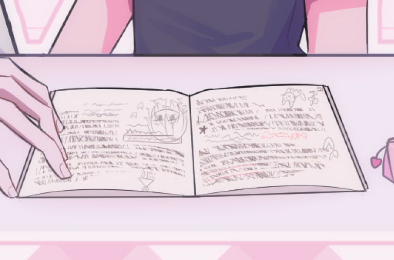 偷偷發現白在教帕的時候,帕的本本上畫了白的塗鴉