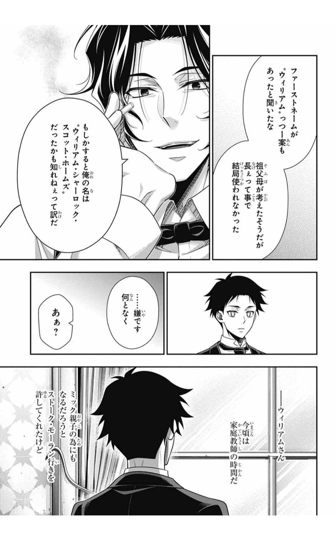 OP2夏洛克的腳張太開了佔掉好多空間,三年後威廉都掉下去2次了!!!1.今天坐這個角度,才發現夏洛克彈的那把小提琴的弦是斷掉的了(