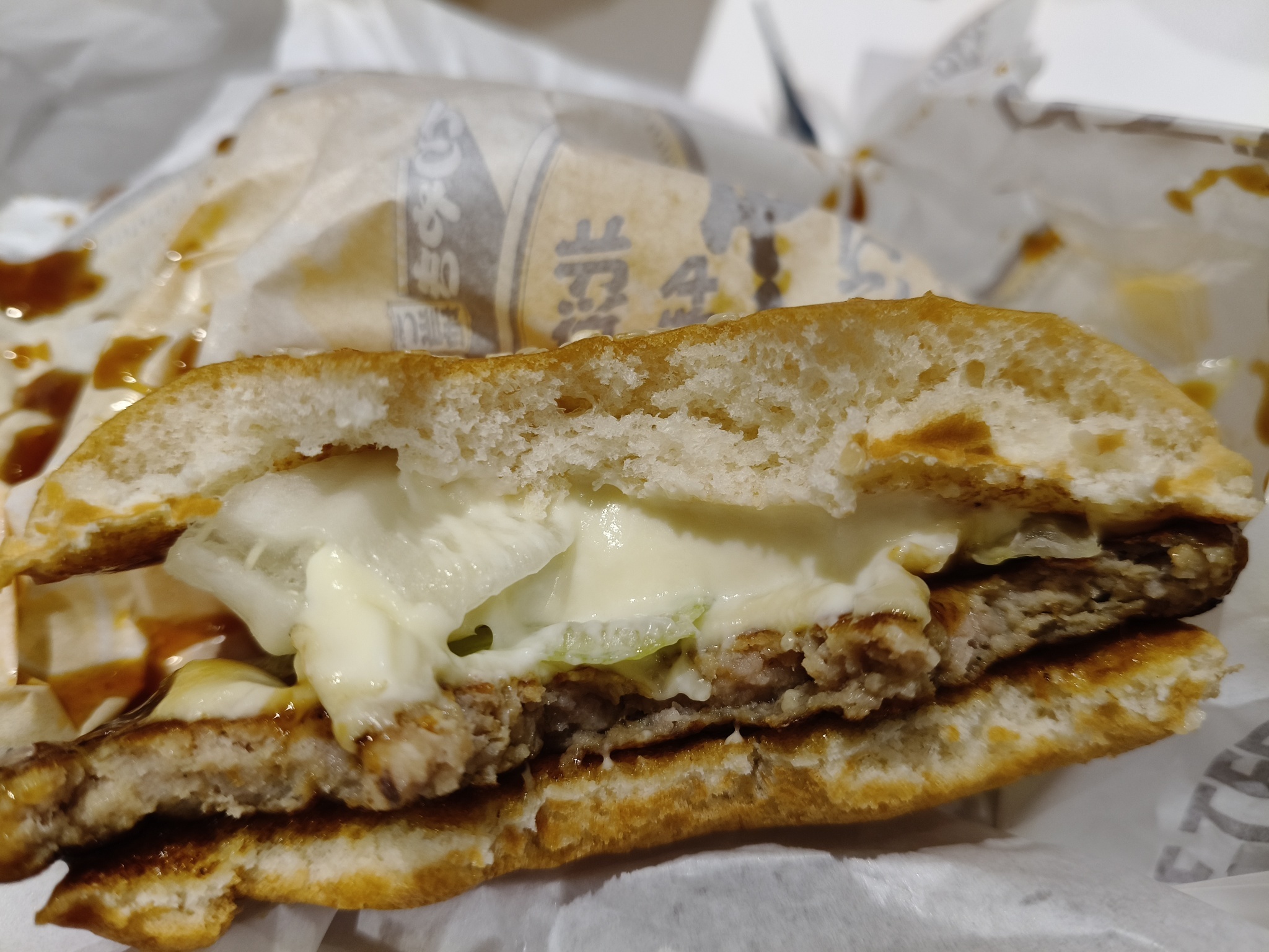 中間的起司,我覺得日本的中間夾層肉比較好吃(醬汁)