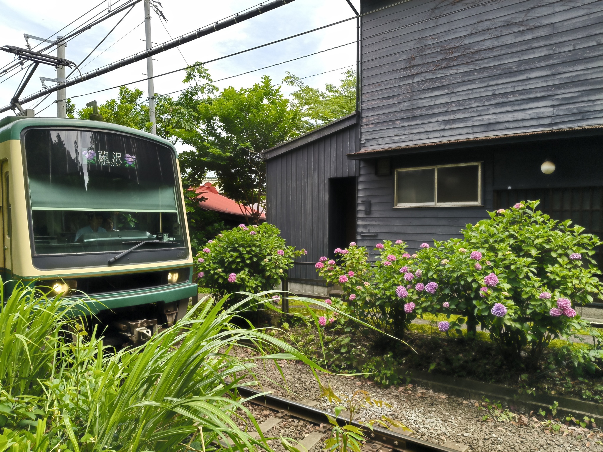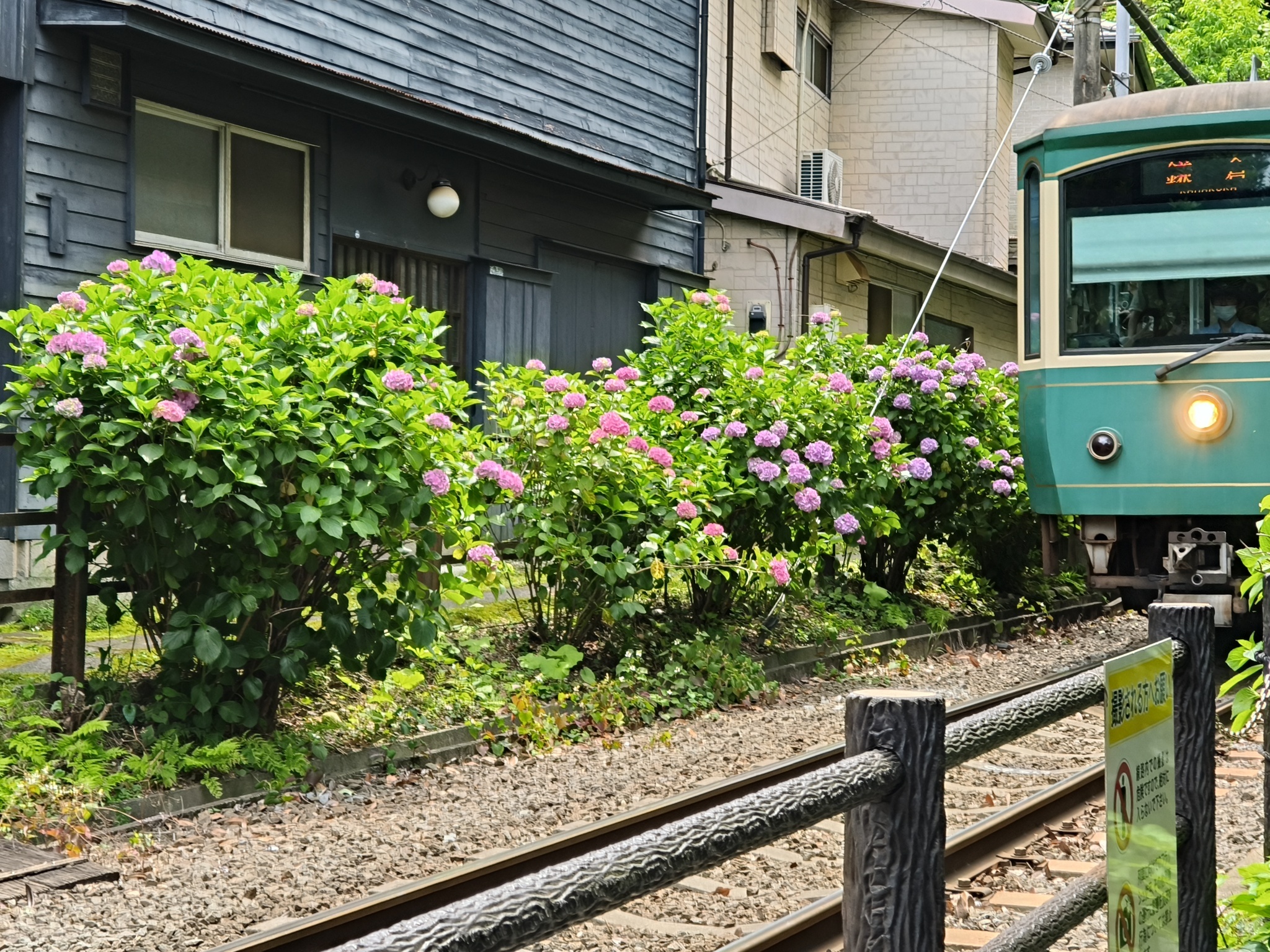 我現在比較擔心晚點回家會遇到通勤潮江之島某小巷裡開的比較多的繡球花:
