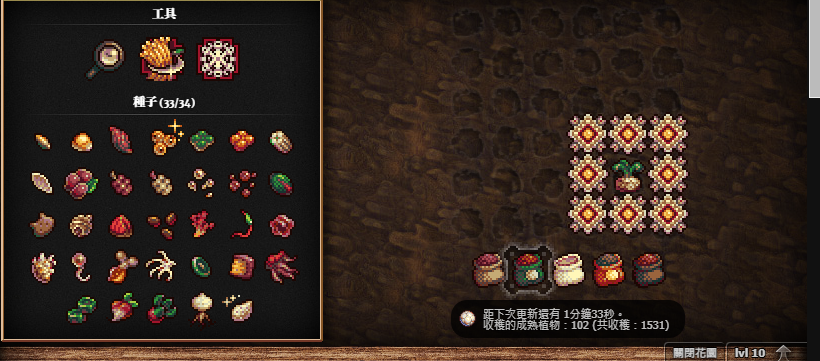 終於種出最後一種植物,怕睡覺的時候被雜草寄生,蓋了一圈永生雛菊除草