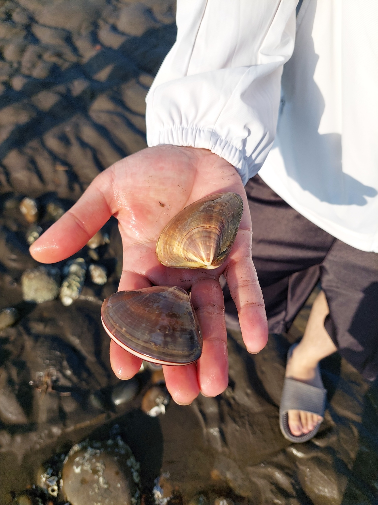 結果沒撿到玉石,只撿到幾隻蟳、寄居蟹和大蛤蜊