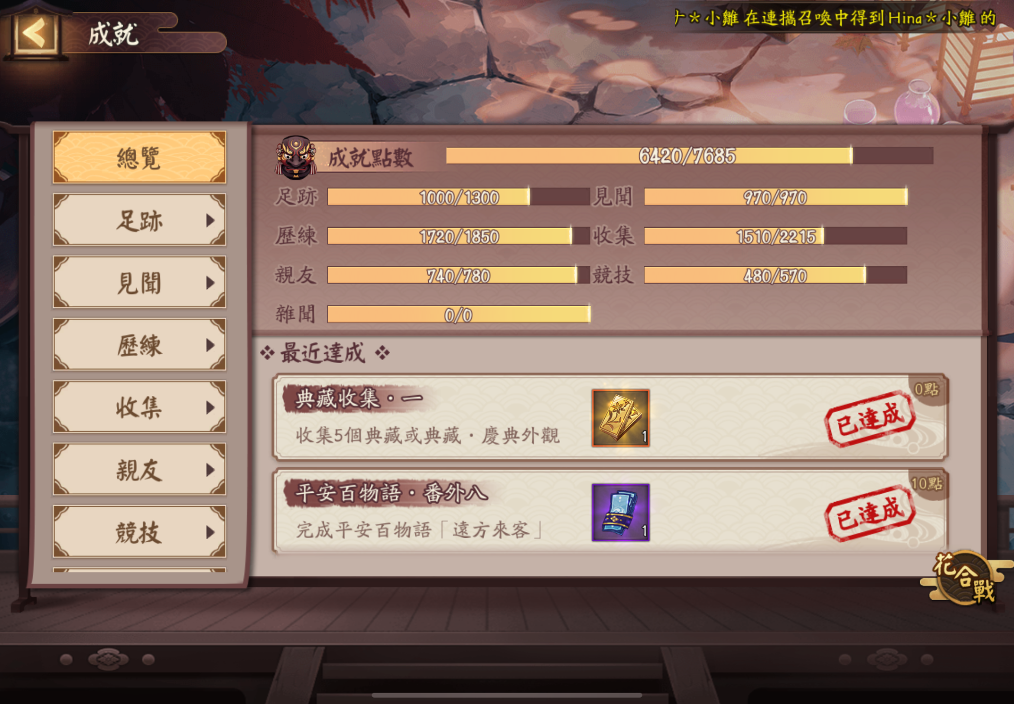 前幾天多的成就