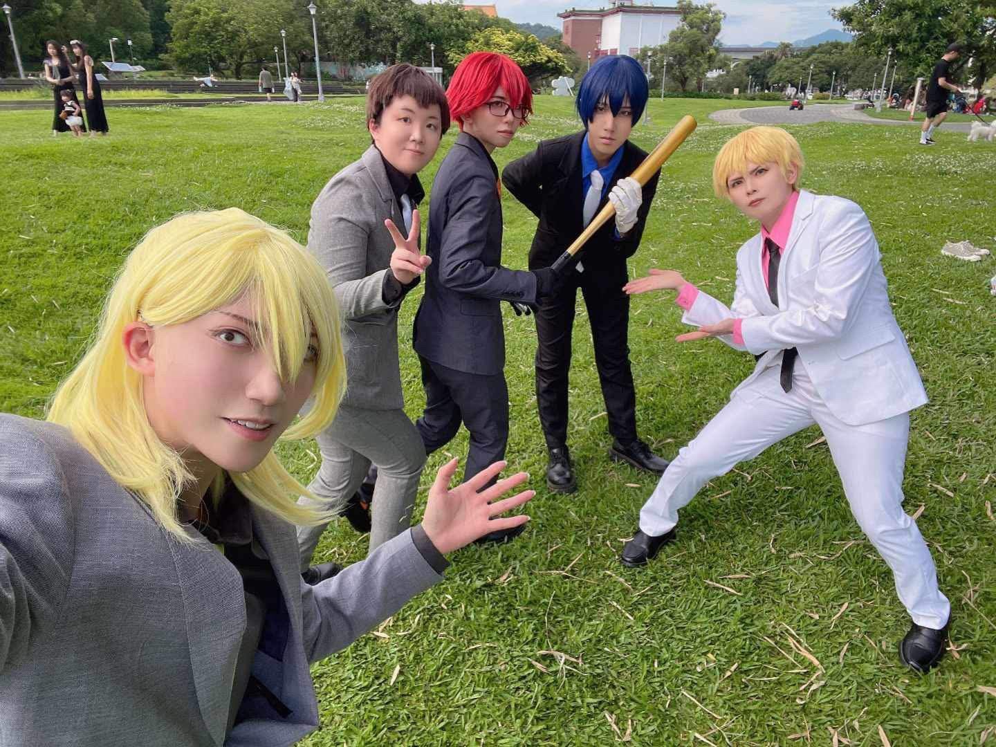 早上先和蛇蛇在捷運站碰面,30度底下穿全套西裝真的太可怕了......就算互相噴了涼涼噴霧和用電風扇還是快融化,走去排隊的時候因為太陽很大還撐了陽傘(運動男孩撐傘的畫面真的好好笑(然後看到美麗的全副武裝伊作學長和仙藏學長走過去