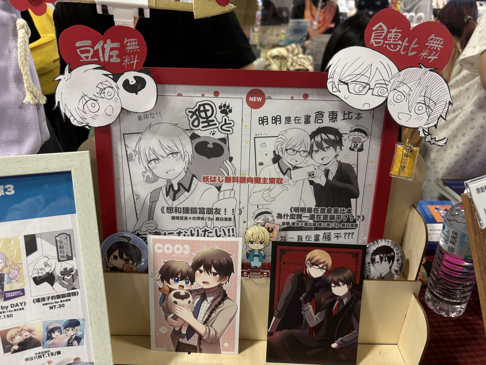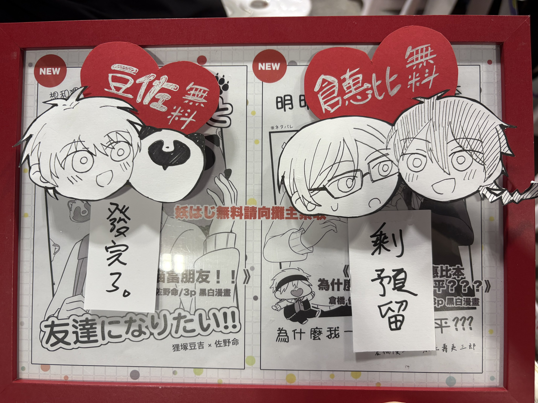 攤位上擺無料裱框+旁邊的Q版裝飾好好看好可愛我要偷偷學起來……!!(好意思