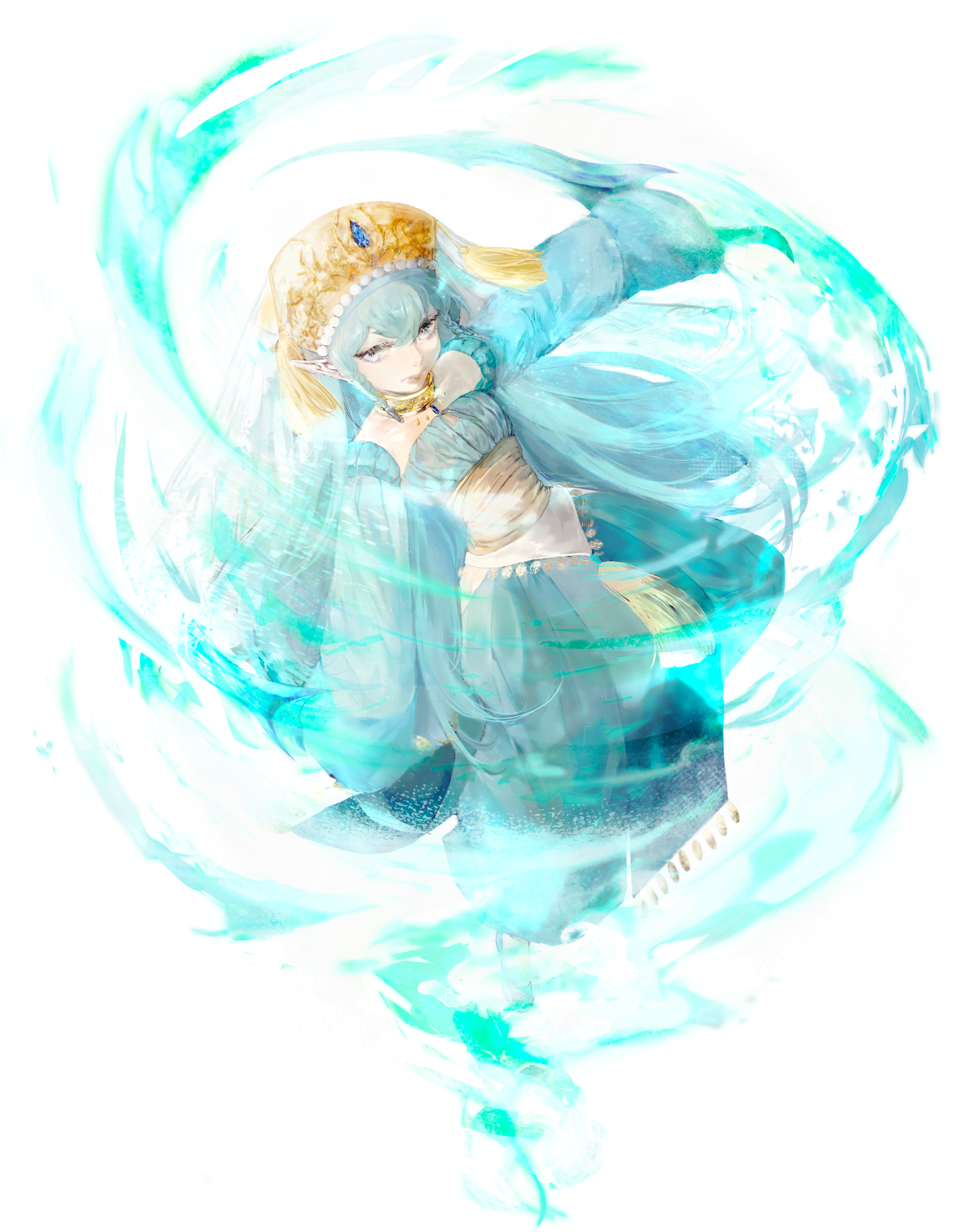 |淡湖水青長直髮,銀灰色瞳