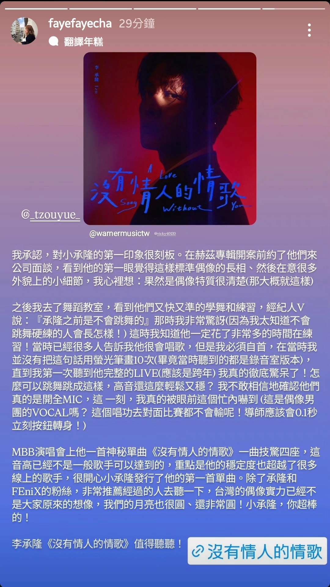 李承隆Tzo《沒有情人的情歌 A Lovesong Without You》|Official Musi...