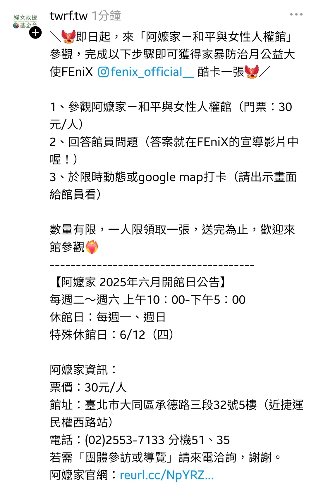 財團法人台北市婦女救援社會福利事業基金會 (@twrf.tw) on Threads