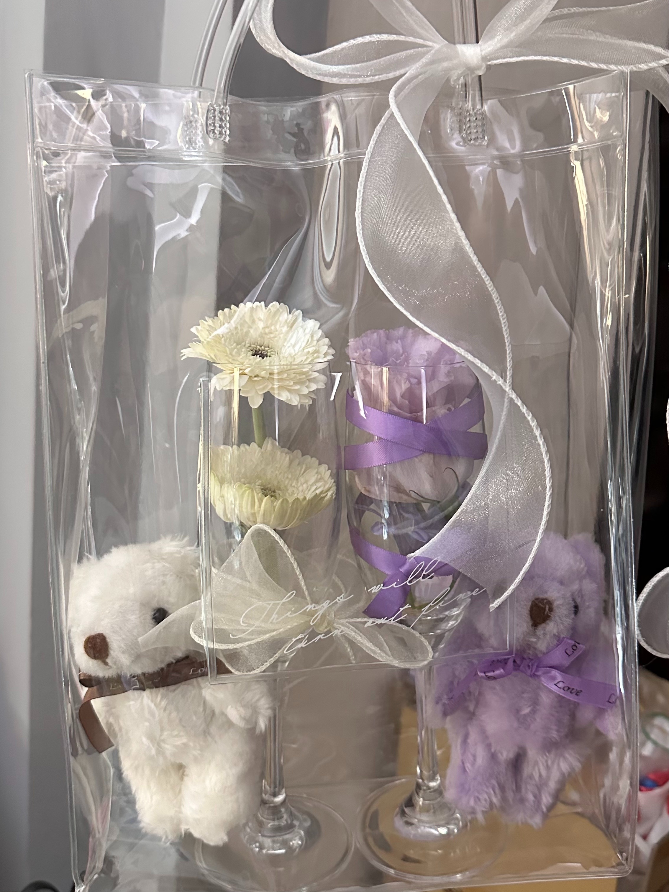 放在祭壇上的花杯超美的白紫小熊也好搭🤍💜