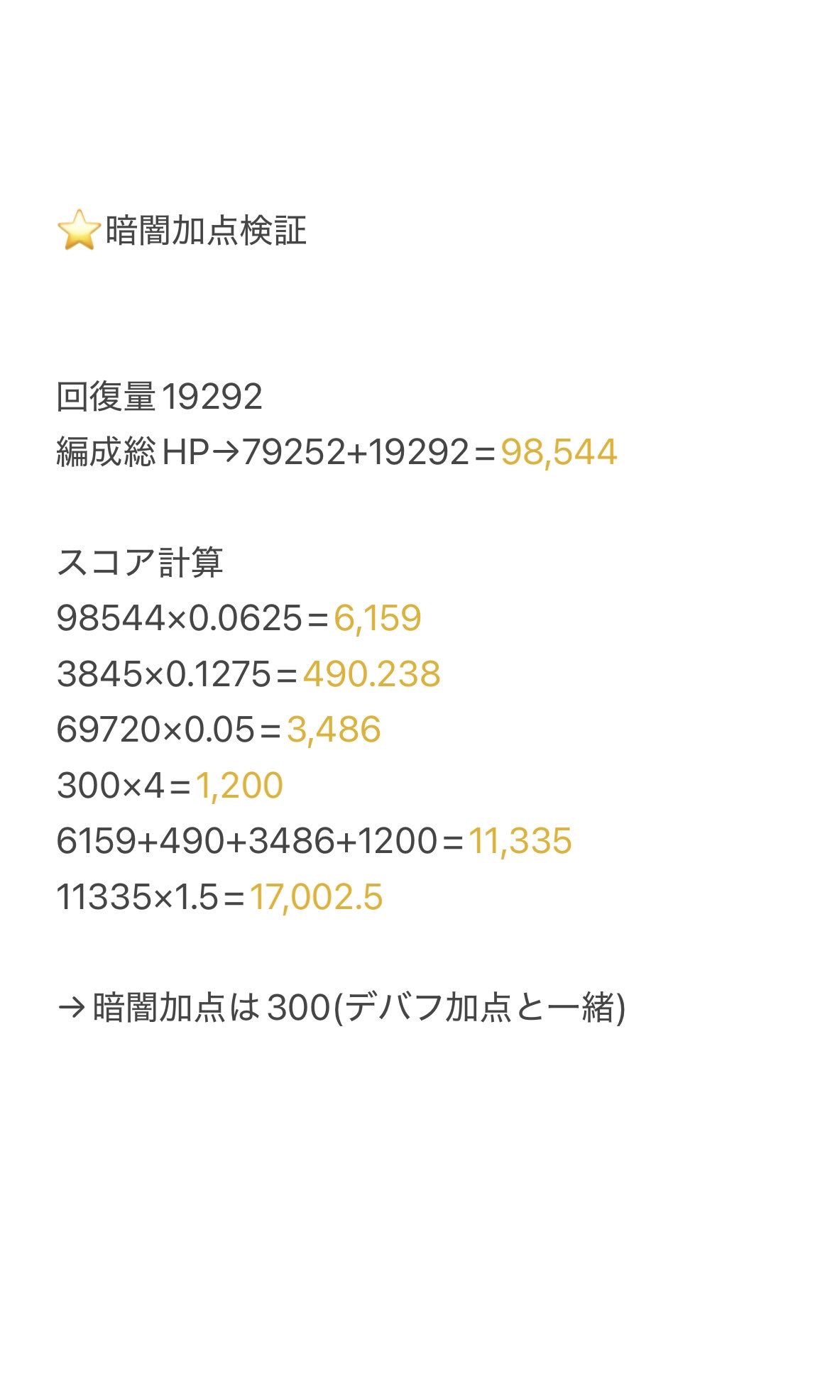 ,黑暗算一個debuff。這個要算出精準值很難,這邊我們從簡取大佬估出來的大約值