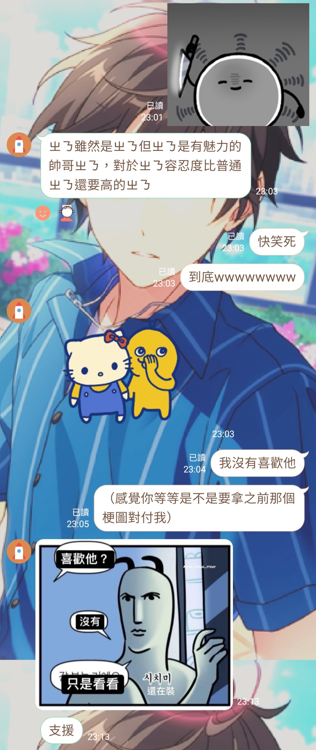 他都喜歡拿一些奇怪的梗圖嗆我
