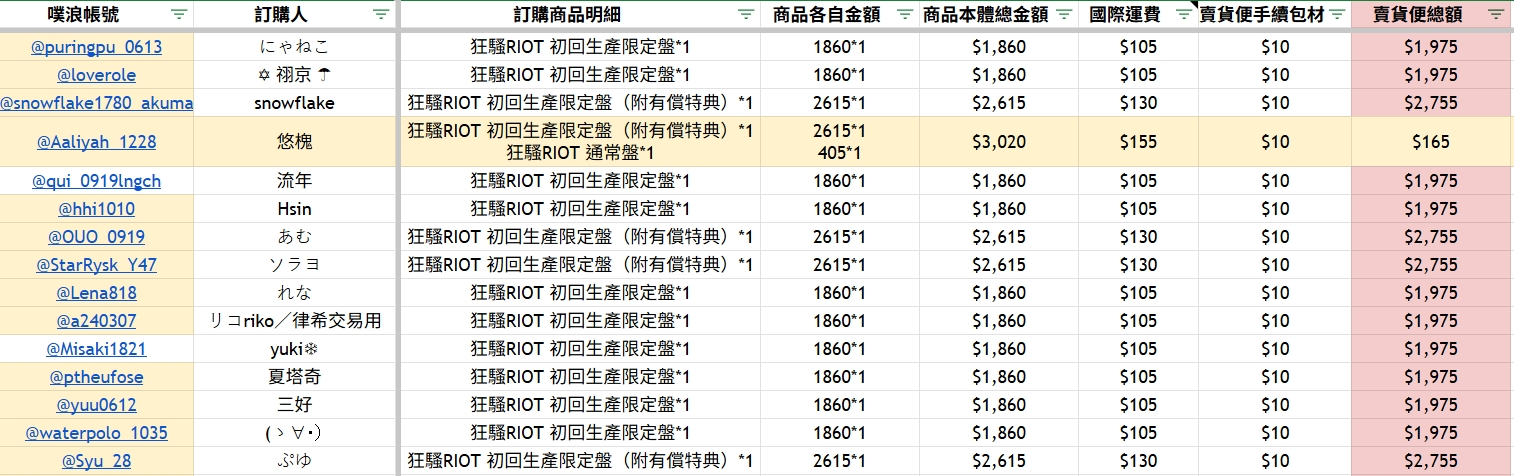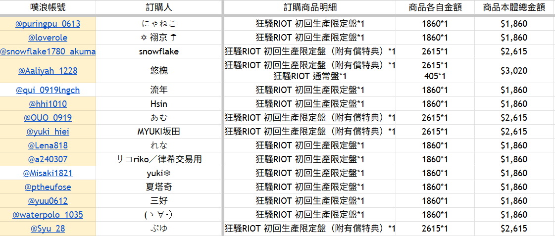以上確認無誤,可以在賣場內找到自己的名字下單,有任何問題歡迎隨時提出,謝謝大家