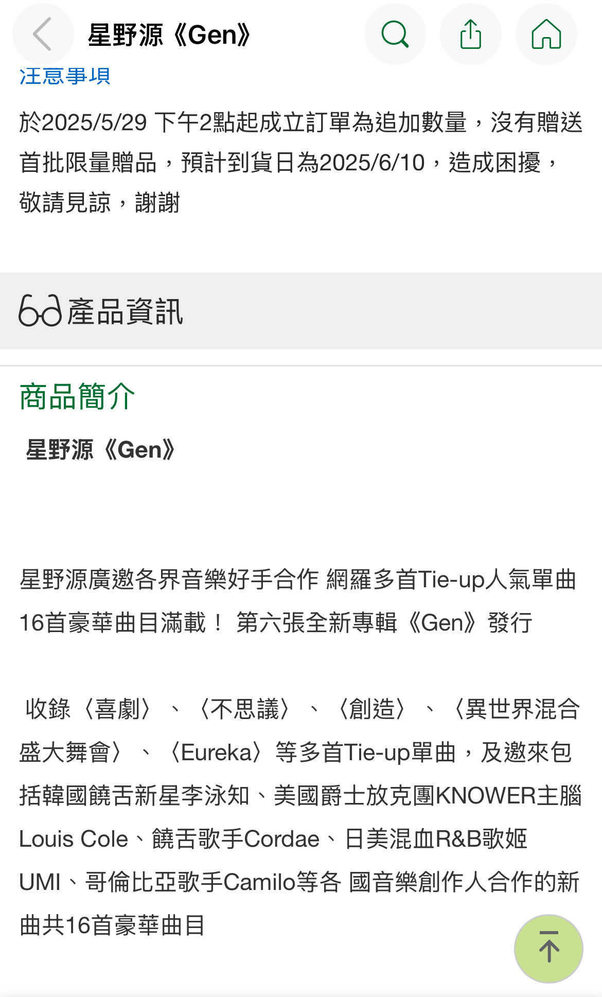 博客來|星野源《Gen》,優惠價468元