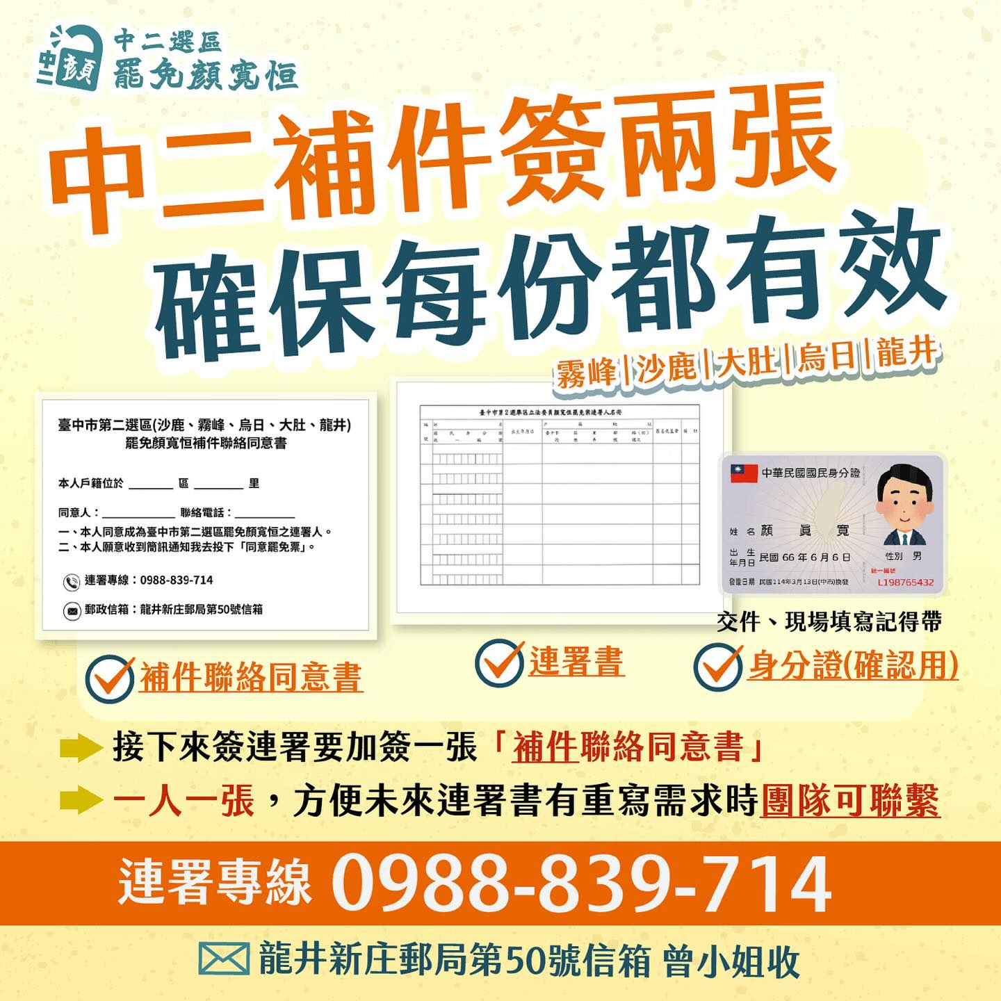 罷免台中第二選區立委顏寬恒