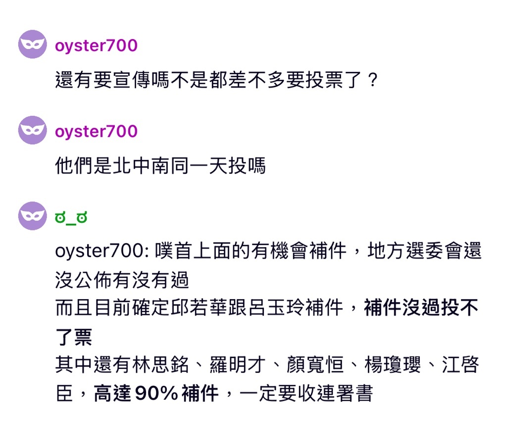 另外北中南投票時間,要看每個不同連署區什麼時侯過中選會的審核才能確定各個連署區的投票時間