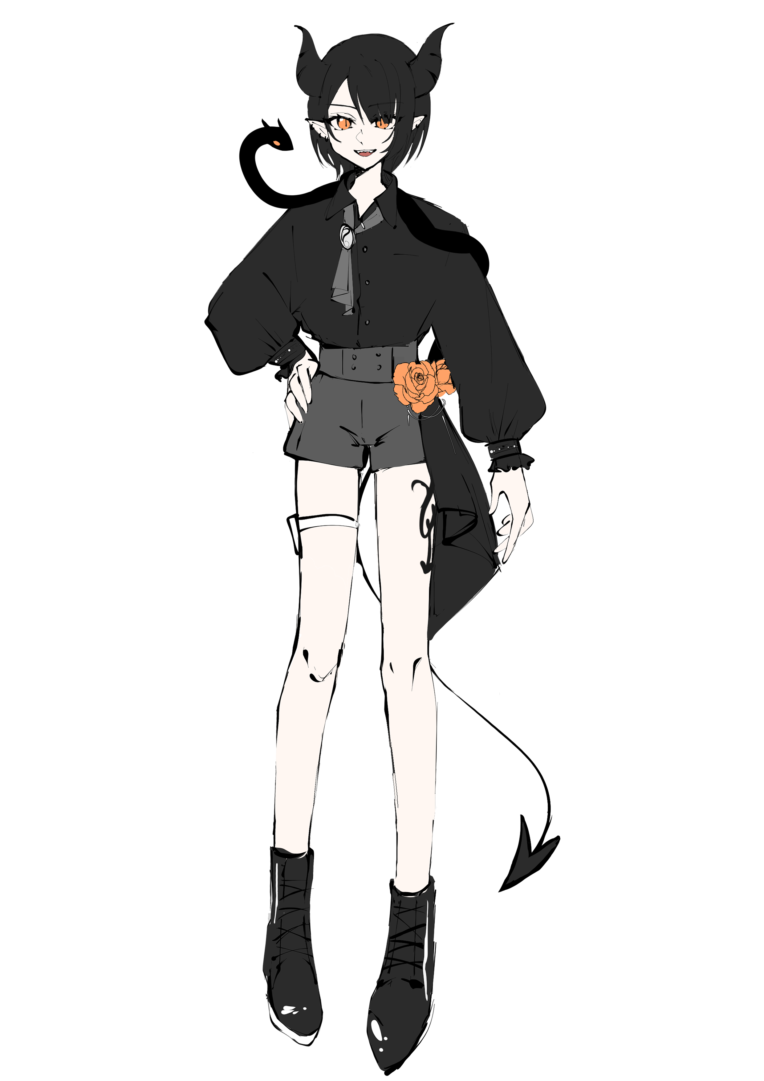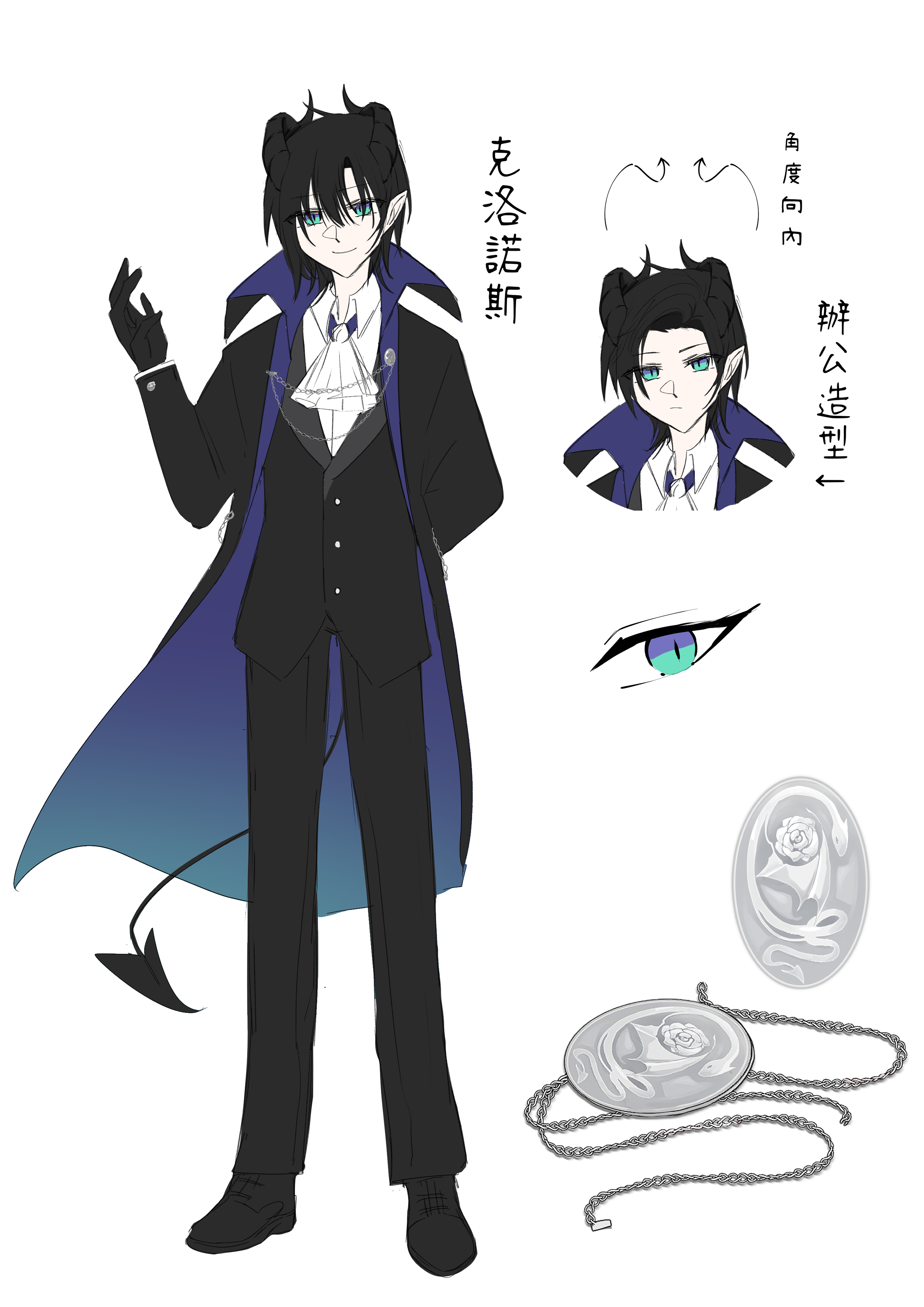又很想挑戰非舒適圈的髮型,努力搞出來一個感覺差了一點的形象後試著把眼白塗黑(當時好喜歡眼黑設定),再加上短打的劇情,一個不會說話又犀利旦又妹控的人就這樣誕生了。