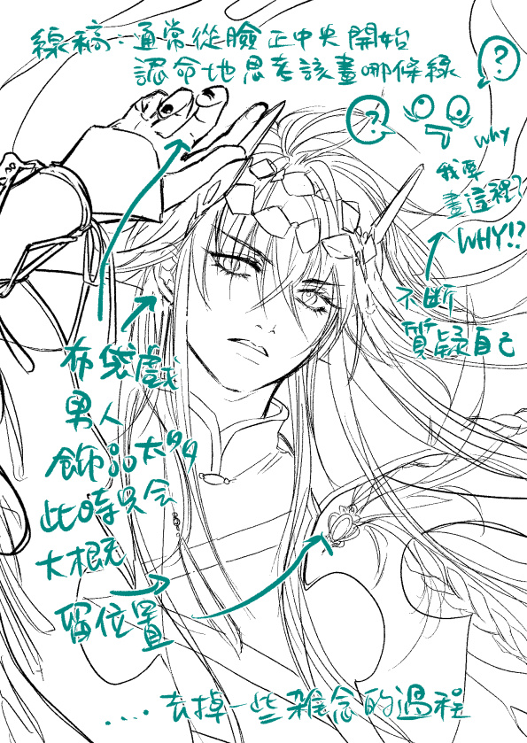 很多東西都是等上色才長出來。線稿地基。會一面畫一面叫自己不要猶豫!總之畫!