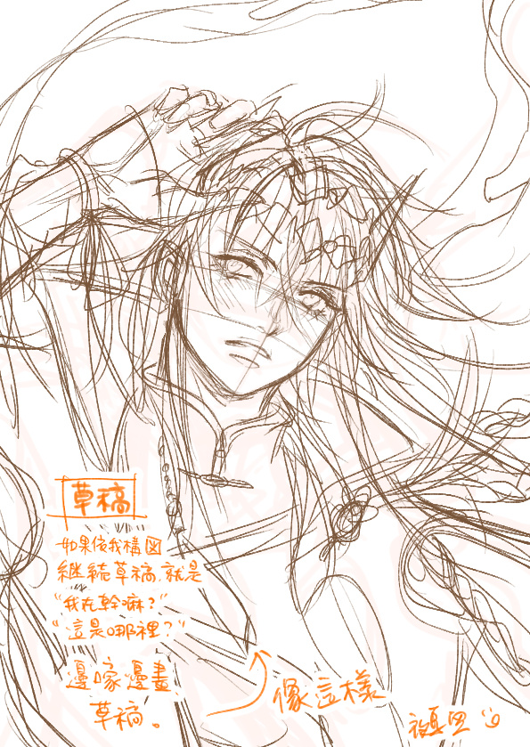 草稿的時候就會盡量確認五官怎麼長,也會有很不順的時候,常常需要重畫四五次。(尬
