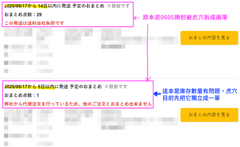 安安,稍早收到🐯信件通知,目前0605團其中一本書因庫存數量有問題,導致0605整團訂單從原定「6/5起算14天內出貨完畢」延遲變成「6/17起算14天內出貨完畢」(如下圖所示)