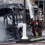 法國巴黎一輛電池組設計在頂部的電動巴士起火,現場宛如行動鹽水蜂炮
