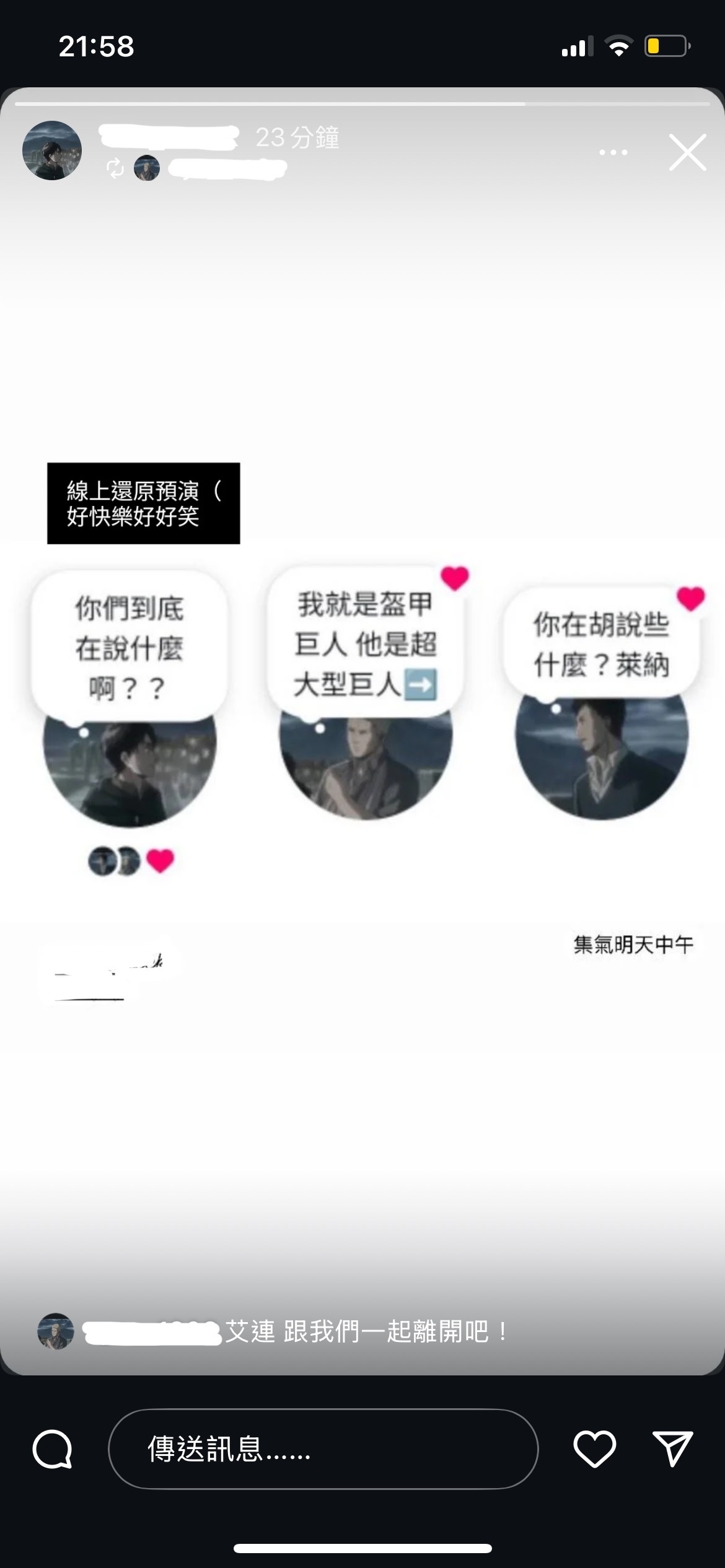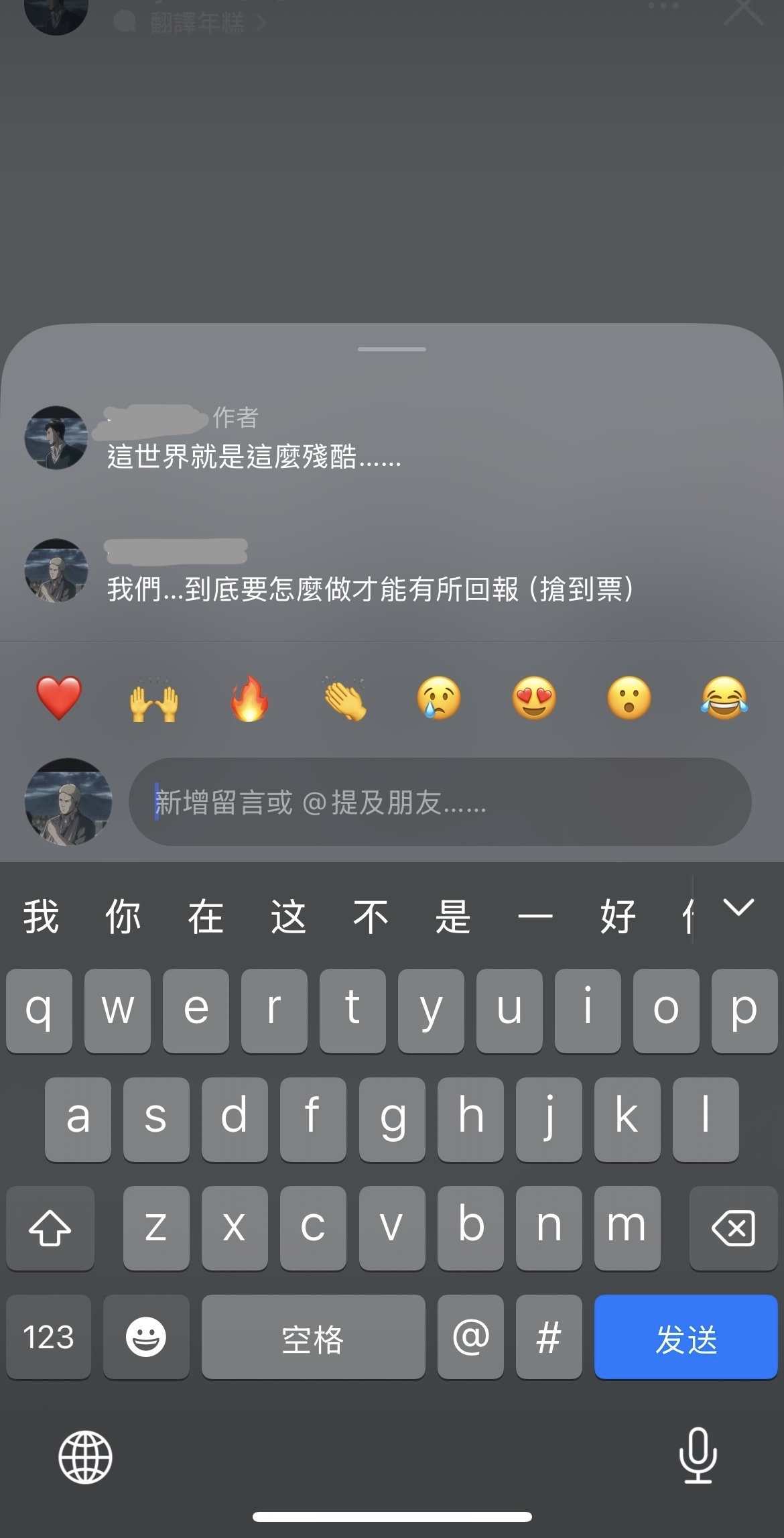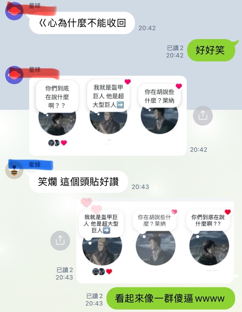 : 發完後還有人來追蹤我們要截圖我們的便利貼