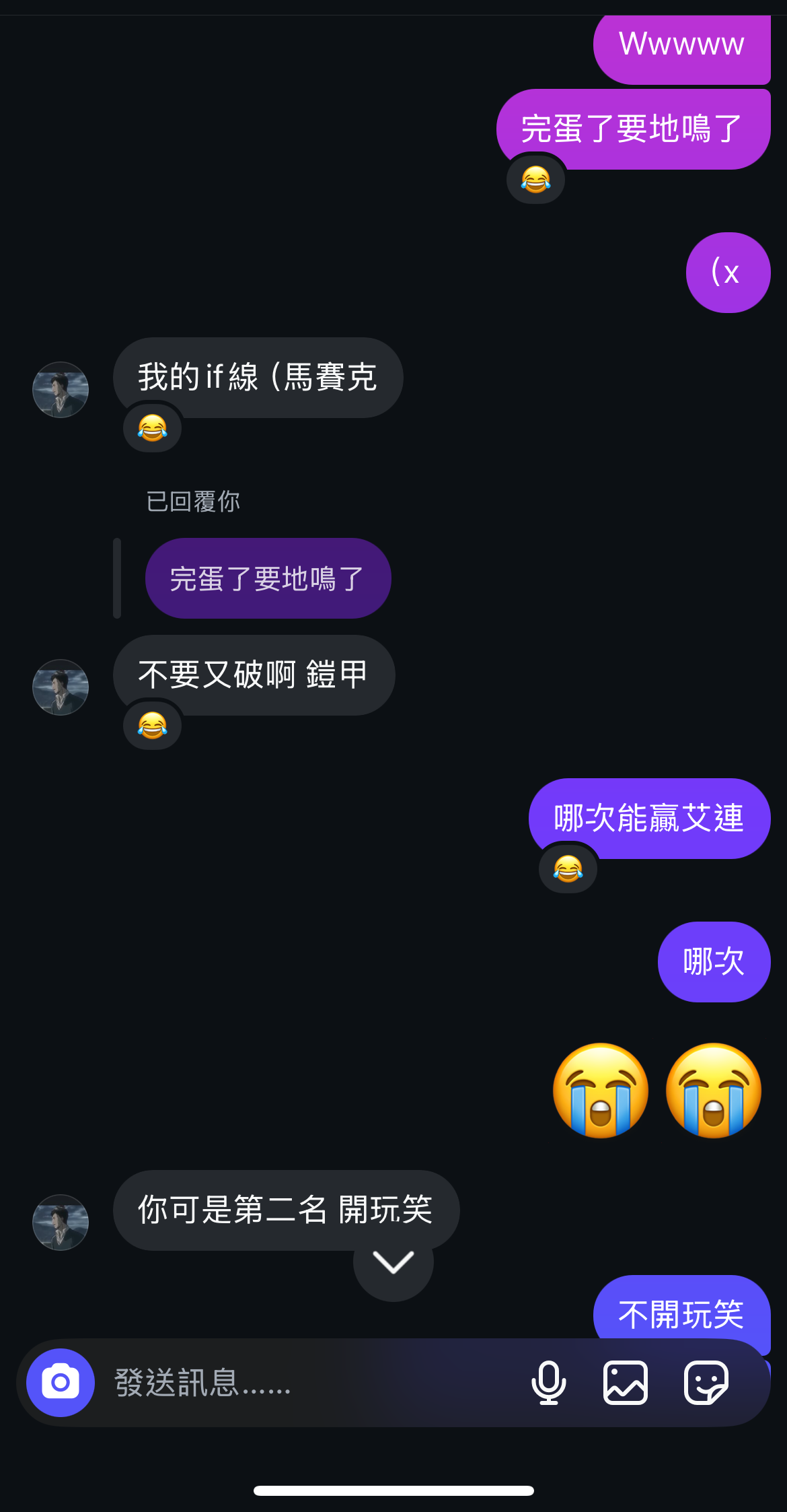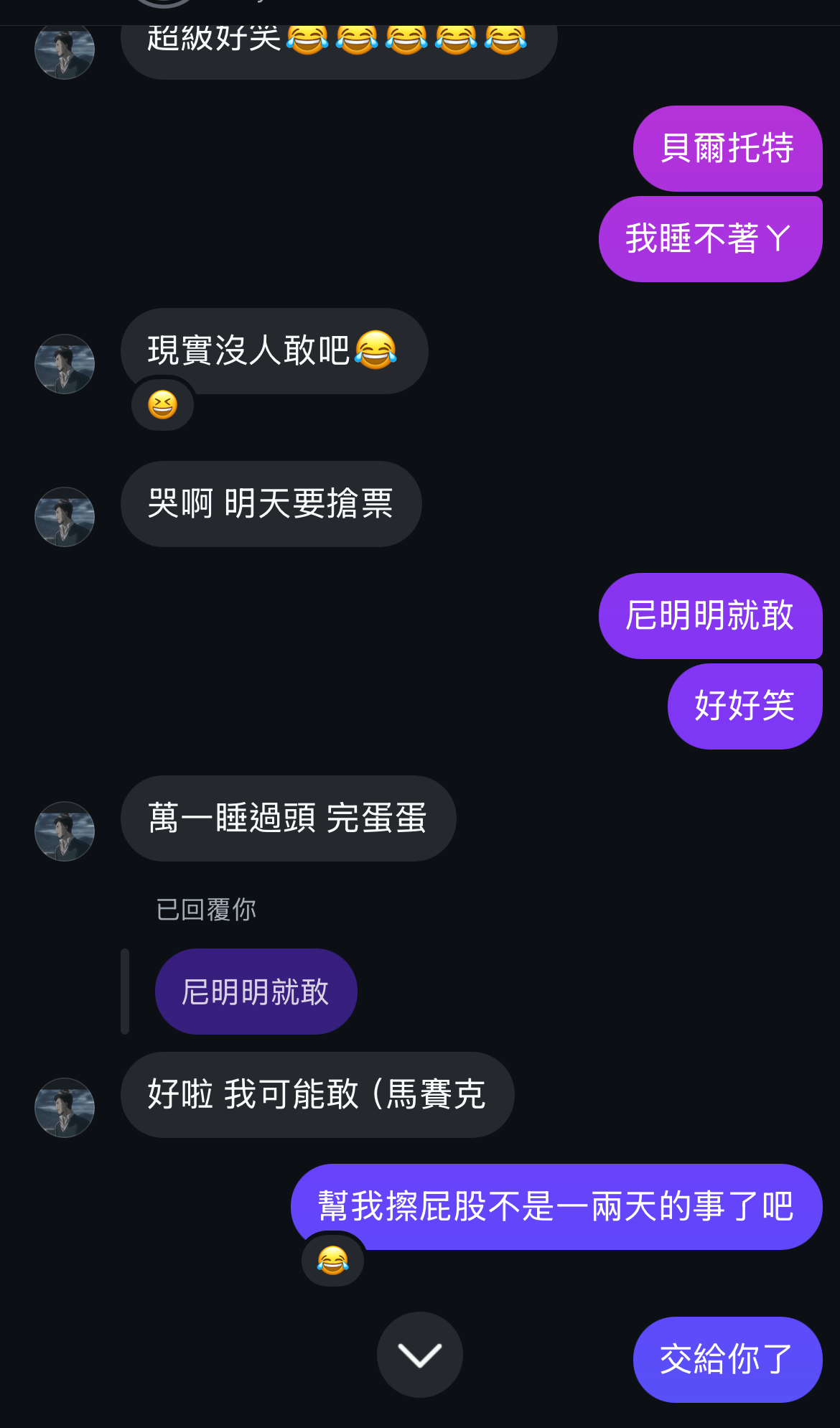 到底什麼荒謬的聊天室荒謬的對話還會有人要開噗紀錄明天換一馬 口摳ㄉㄟ