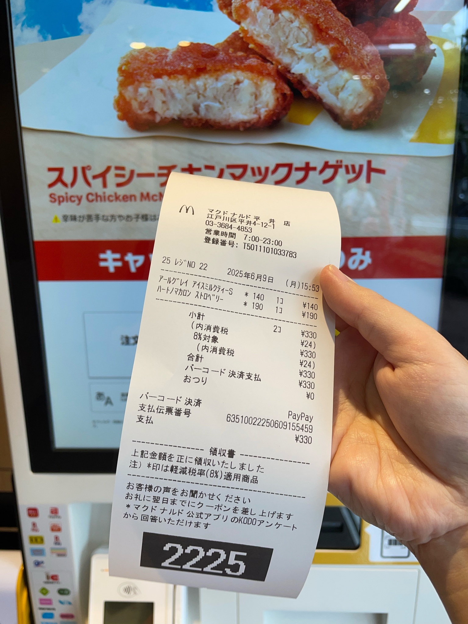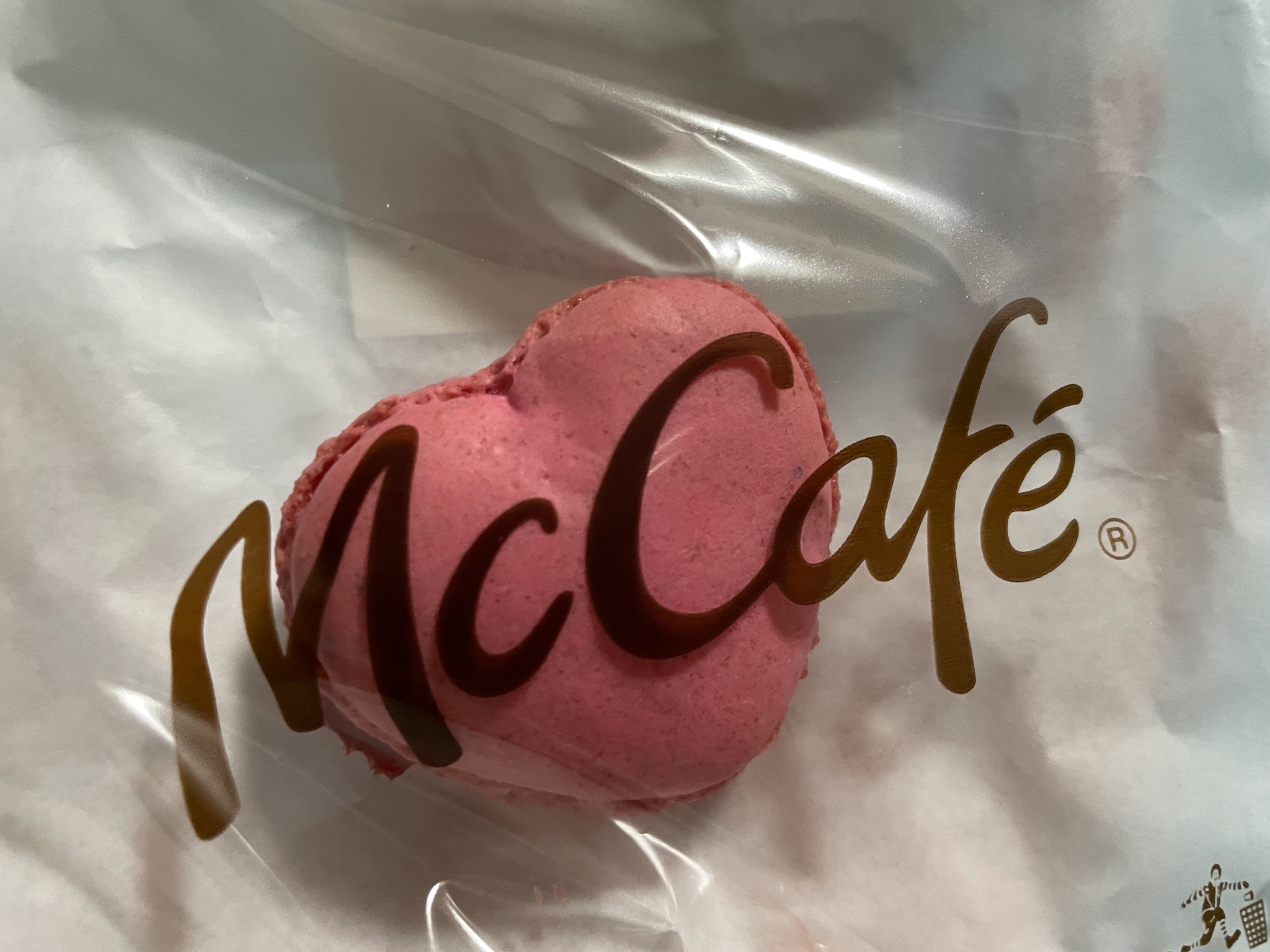從原宿站搭大概一小時的車到平井站,下車出來看到一間麥當勞,用自助點餐機買了伯爵奶茶,然後看到加購區有愛心馬卡龍超可愛就忍不住買了