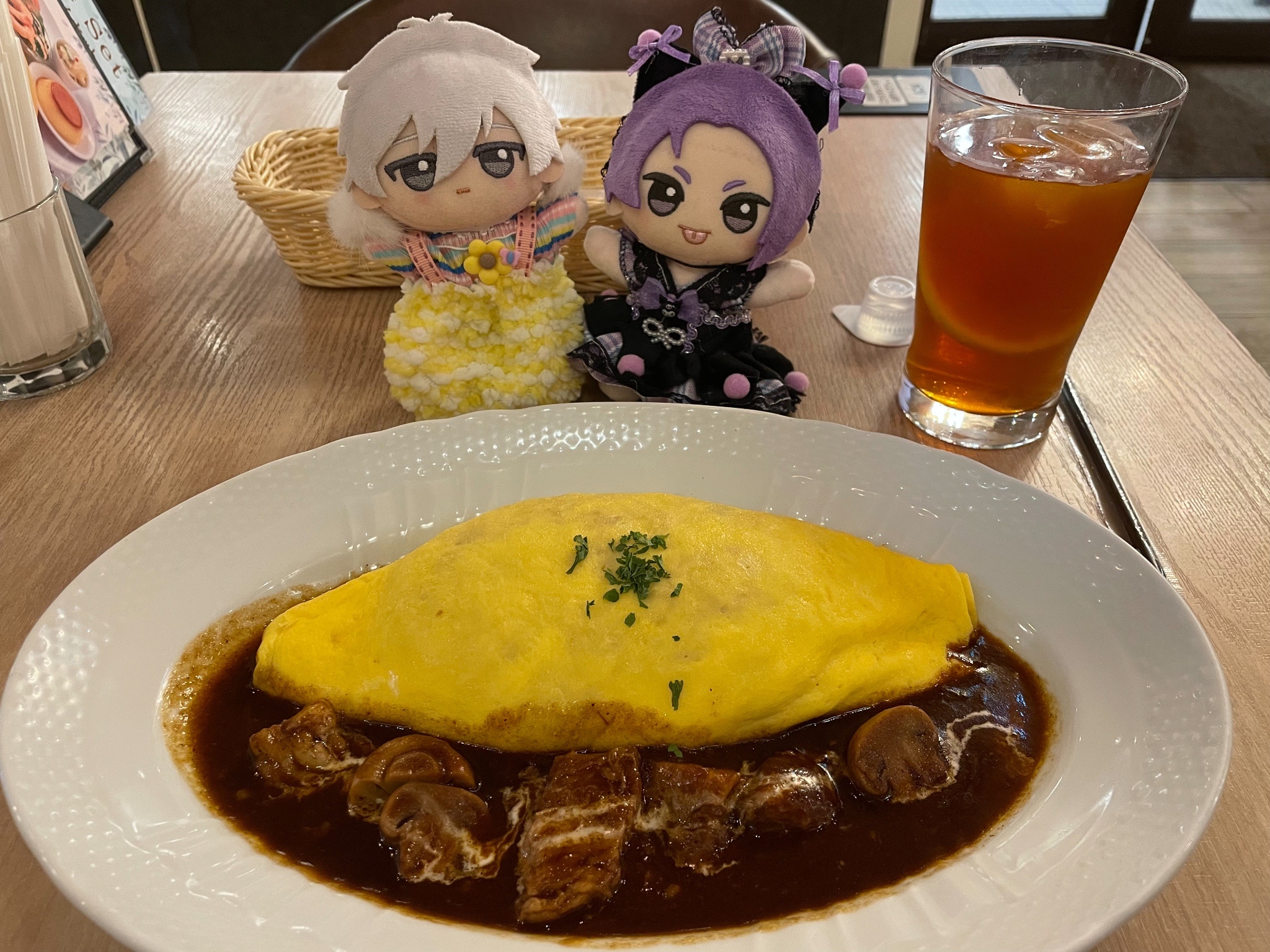 點了牛肉蘑菇蛋包飯和檸檬茶