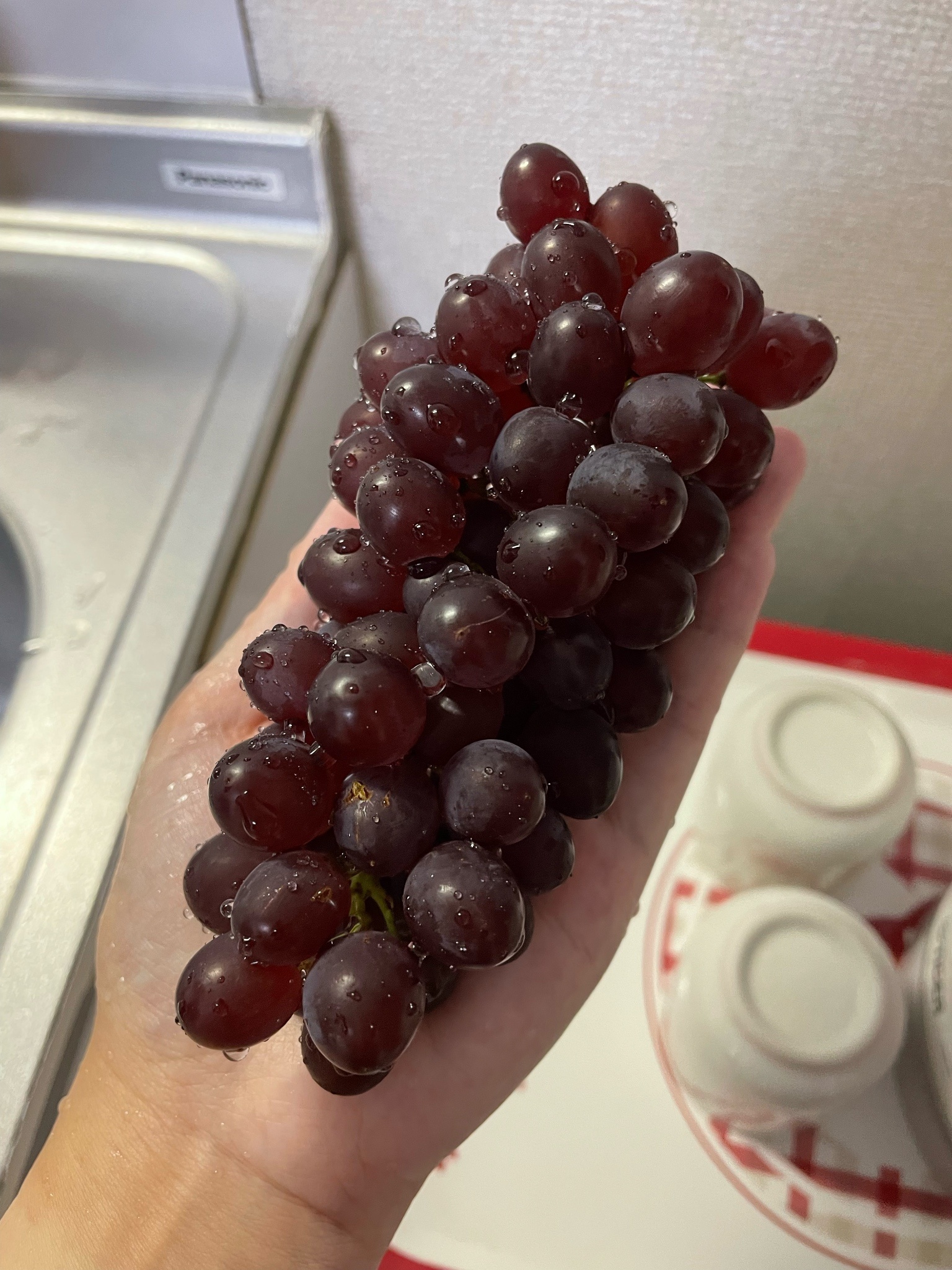 和和牛同一間超市買的可愛小葡萄,有一點酸但香氣很像糖果,滿好吃的~沒有籽但皮稍厚一點,我是直接擠到嘴裡皮不吃
