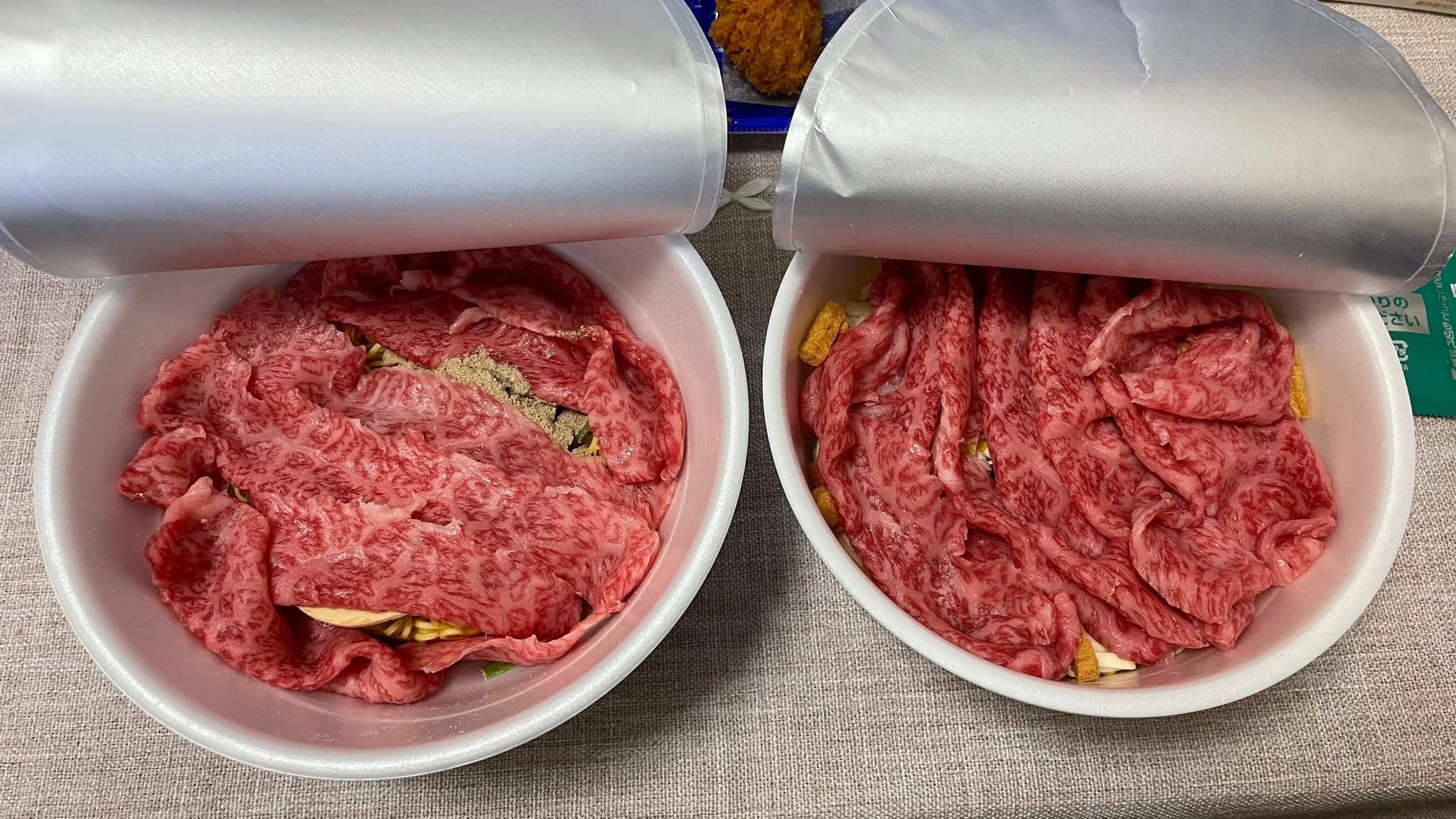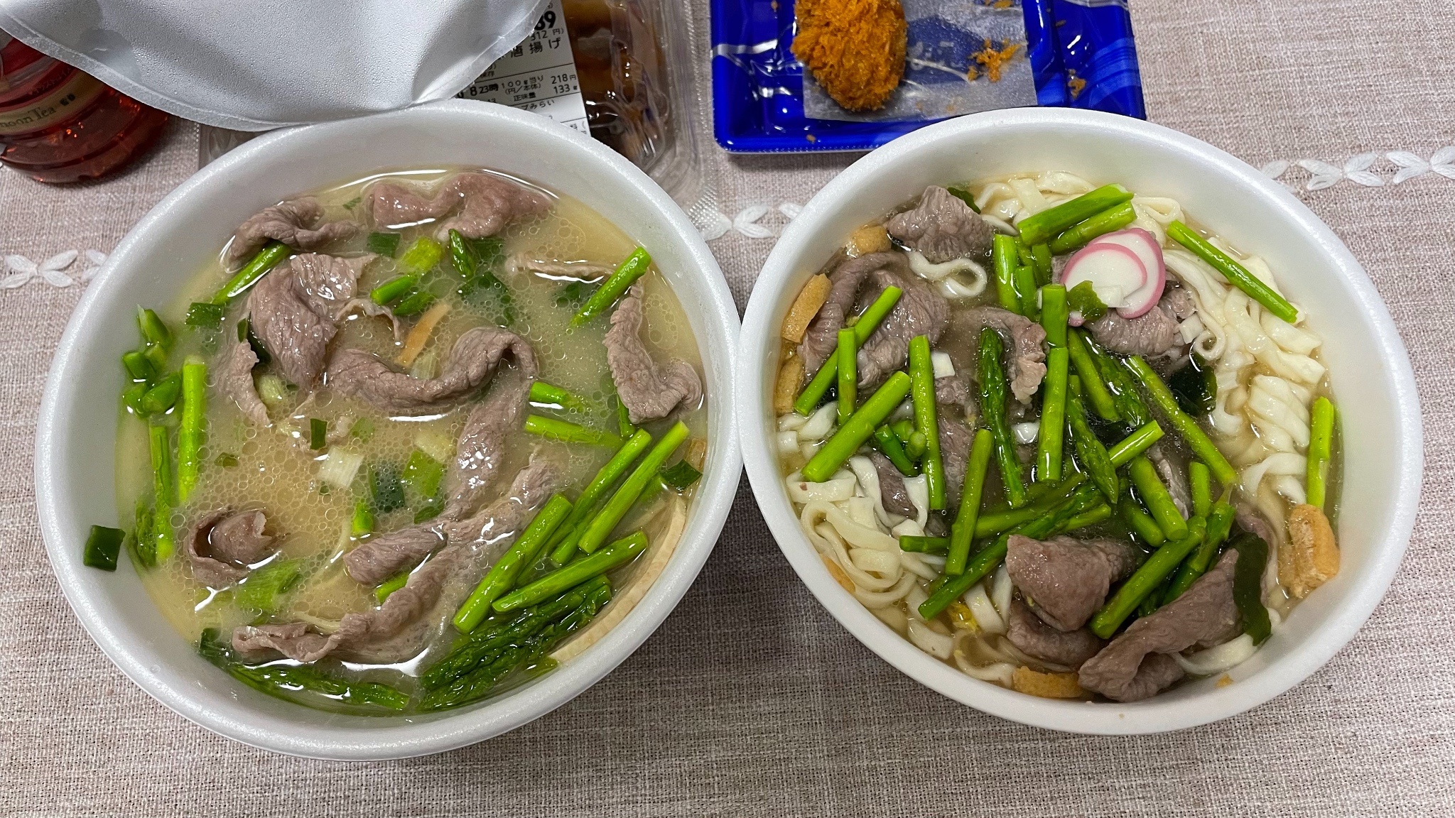 晚餐吃的是一直想嘗試但都沒買到的和牛&泡麵!!剛好民宿附近有超市賣比較高級的肉類,還買了蘆筍,民宿也有微波爐可以用,加熱到熟的差不多之後就一起丟進泡麵裡