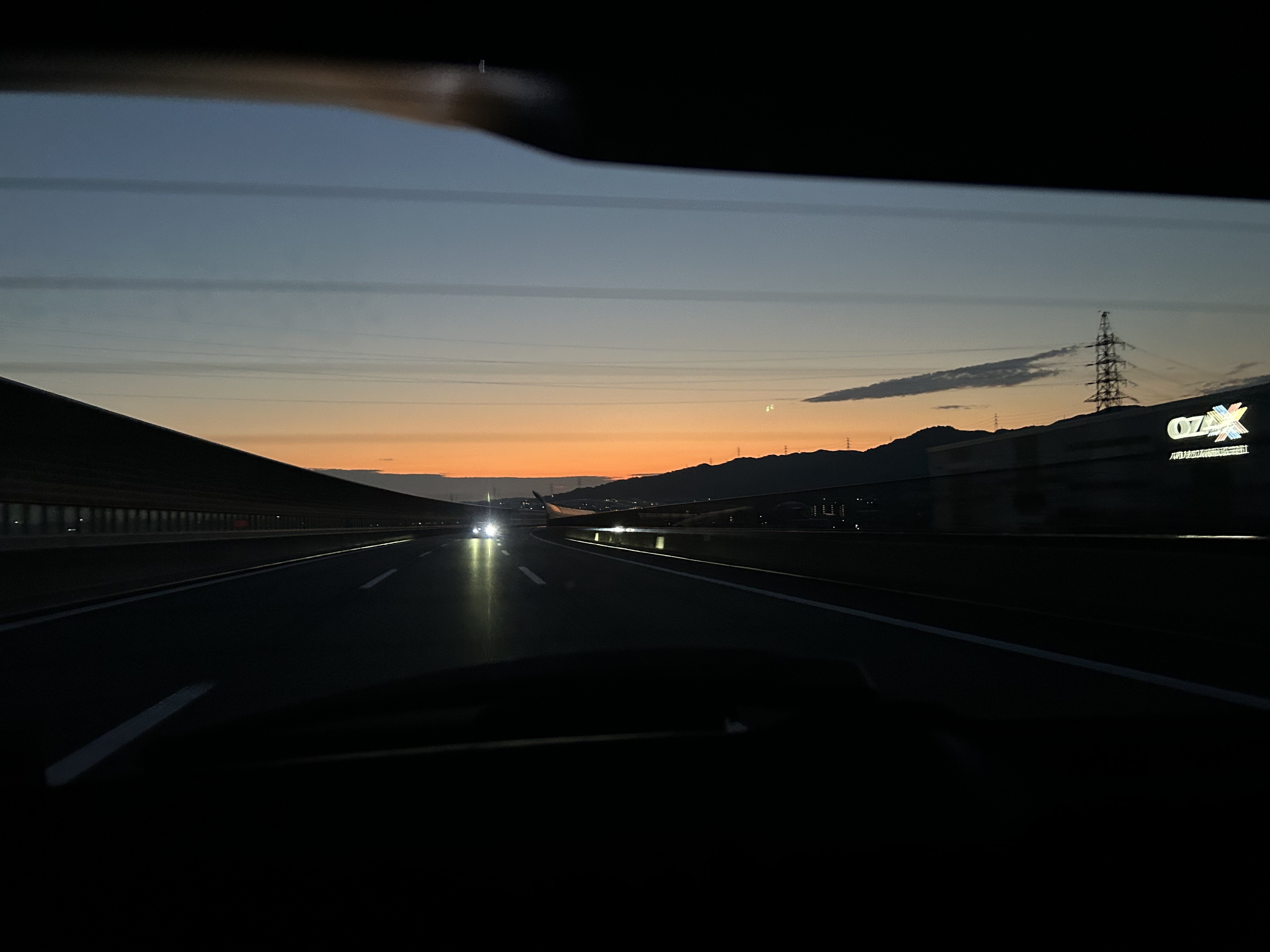 懷著不捨的心情睡了兩個小時,三點四十在夜晚的京都開車前往關西機場,從天黑開到日出,各種風味的日本都體驗到了