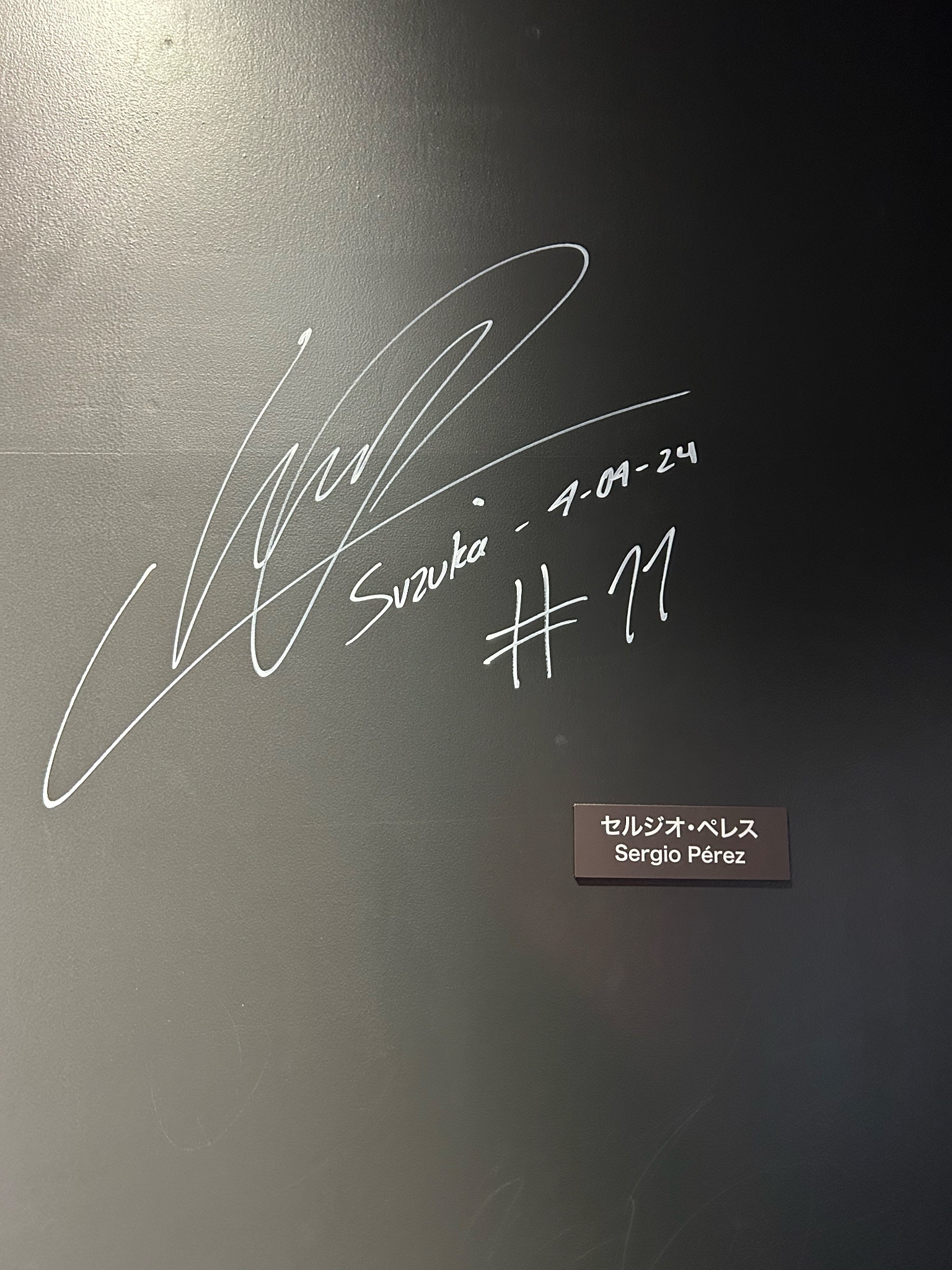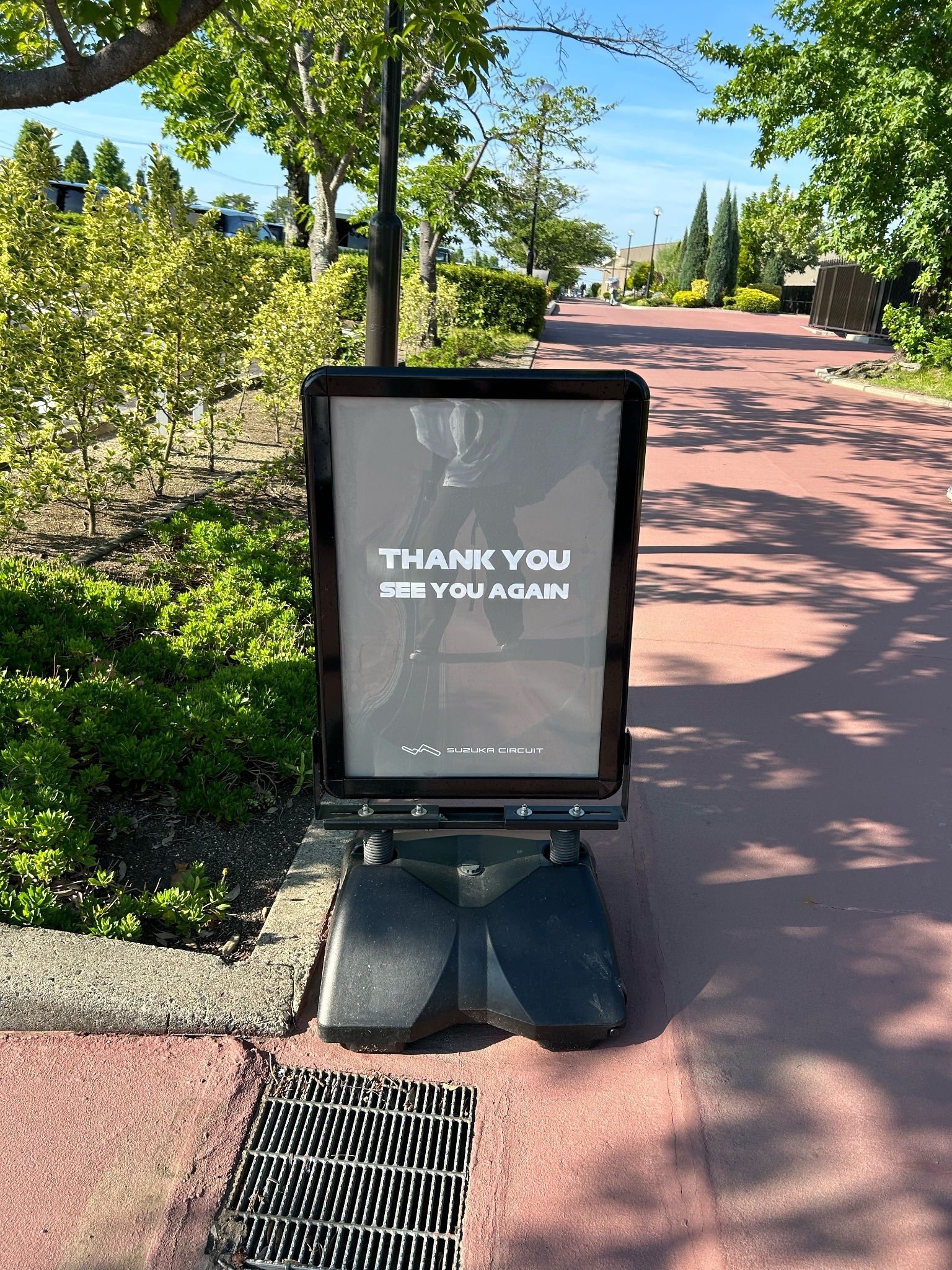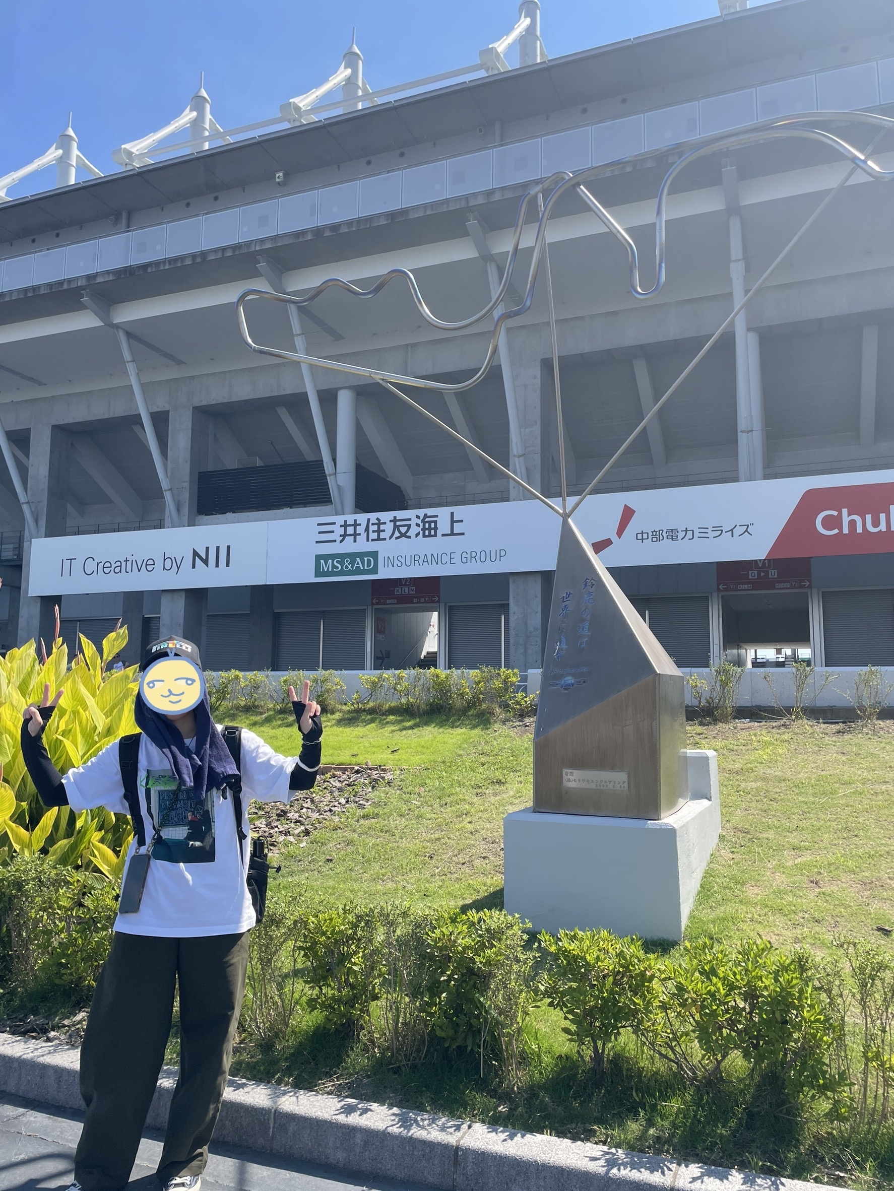 離開賽道以農婦型態與鈴鹿賽道之柱合影