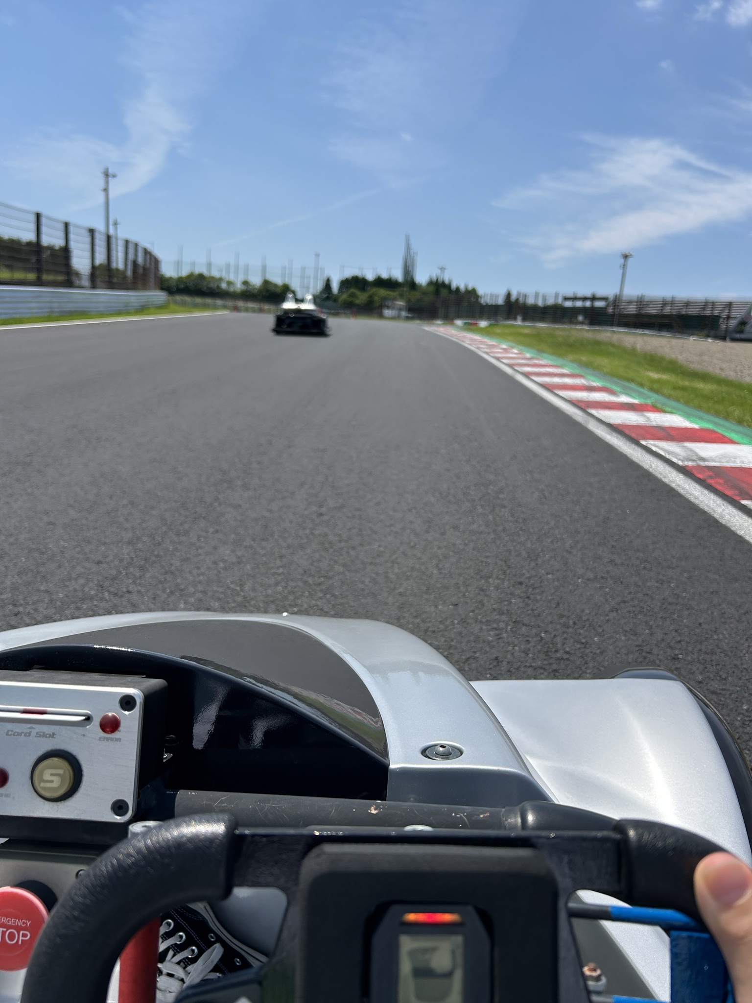 卡丁車最高檔大概時速40公里,吹著涼風看著蜿蜒的車道與一旁的看台,反過來感受車手的視角非常新奇有趣,畢竟通常看賽車是由上往下的視角,最重要的是,這是喜德連續贏四次冠軍的賽道,喜德狂粉已死