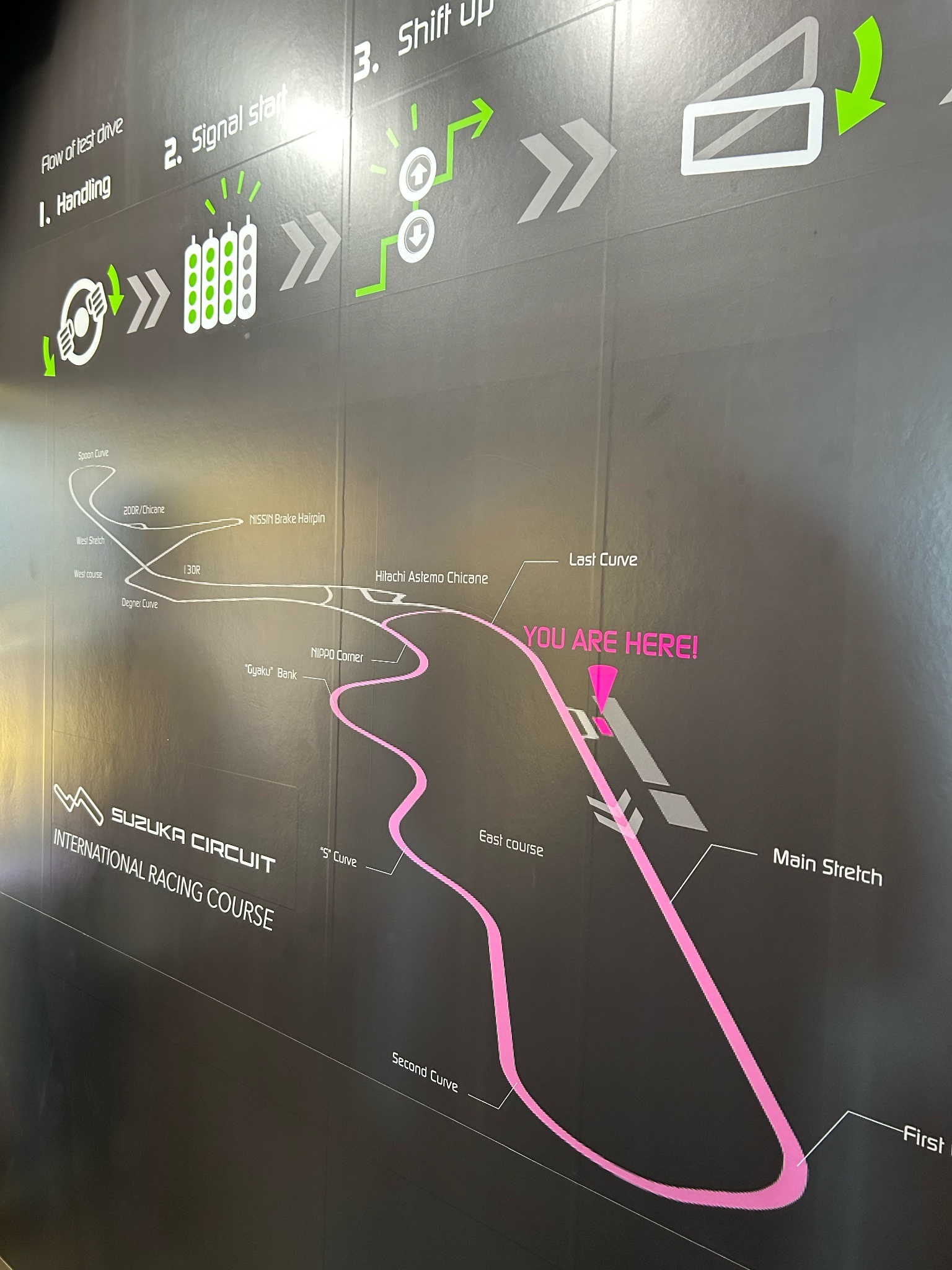 本次最重要也最好玩的活動是「賽道挑戰者」,參加者可以在真正的F1賽道上開卡丁車。雖然只有五六個彎,但有開到鈴鹿最經典的連續彎道,也能讓你體驗五燈熄滅起跑與衝線,結束後拿記錄卡去門口的機台確認成績,毫不意外我超級爛到死,但他們把我拍得非常好看,我愛日本