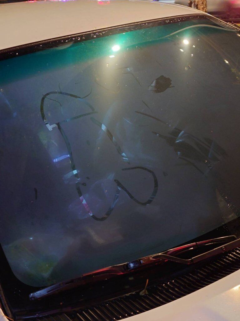 某天下班被缺德的人類笑死 到底為什麼要在別人擋風玻璃畫這個