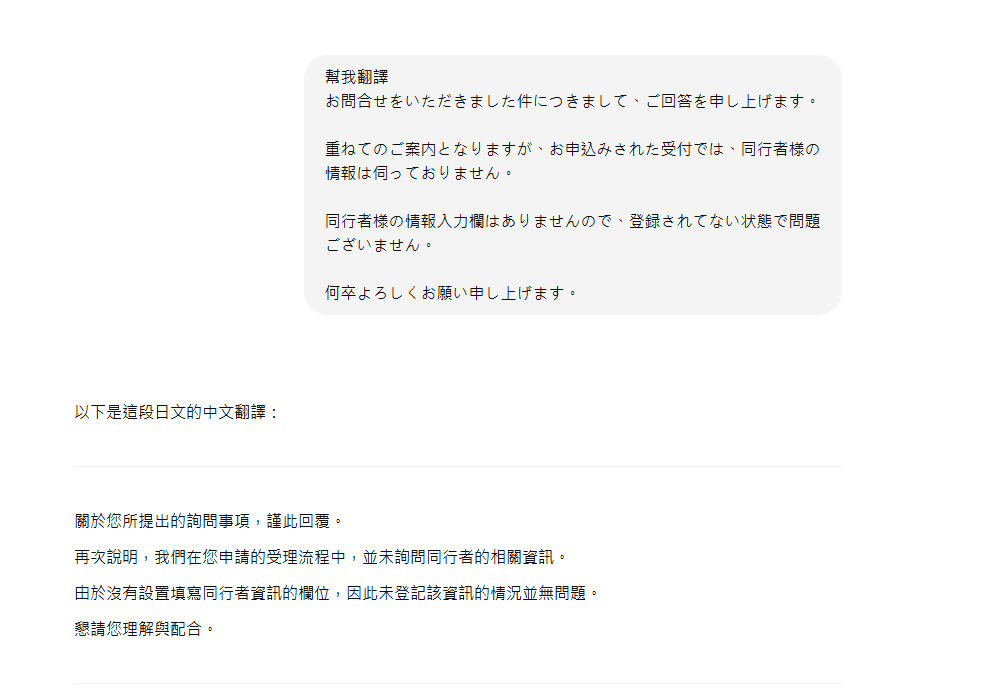 所以我就寫信給官方問說我沒有看到有地方需要寫同行者,那如果要寫要寫在哪?