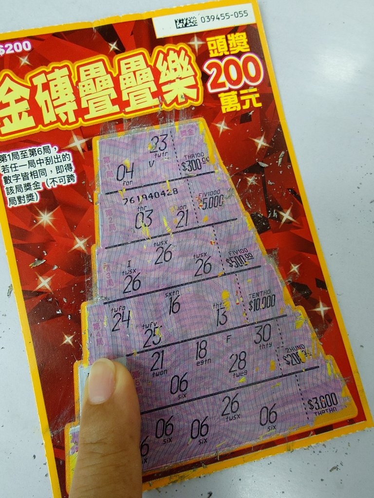 想說也買一張刮刮樂,沒想到真的中了