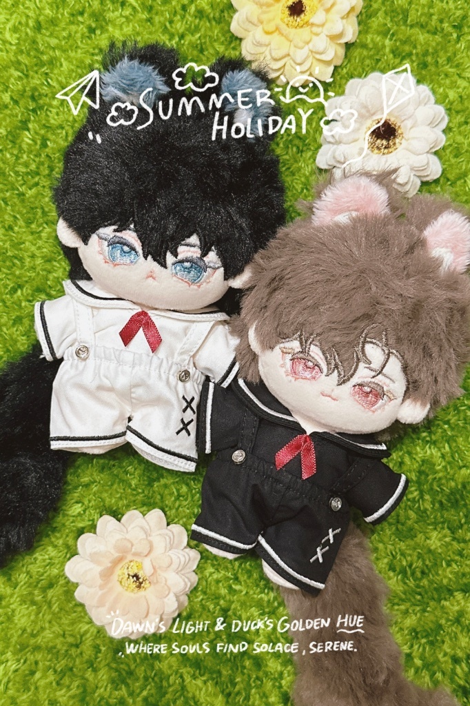 : 炎熱的天氣給他們穿上清爽的淺色系🥰坐著看起來超乖的
