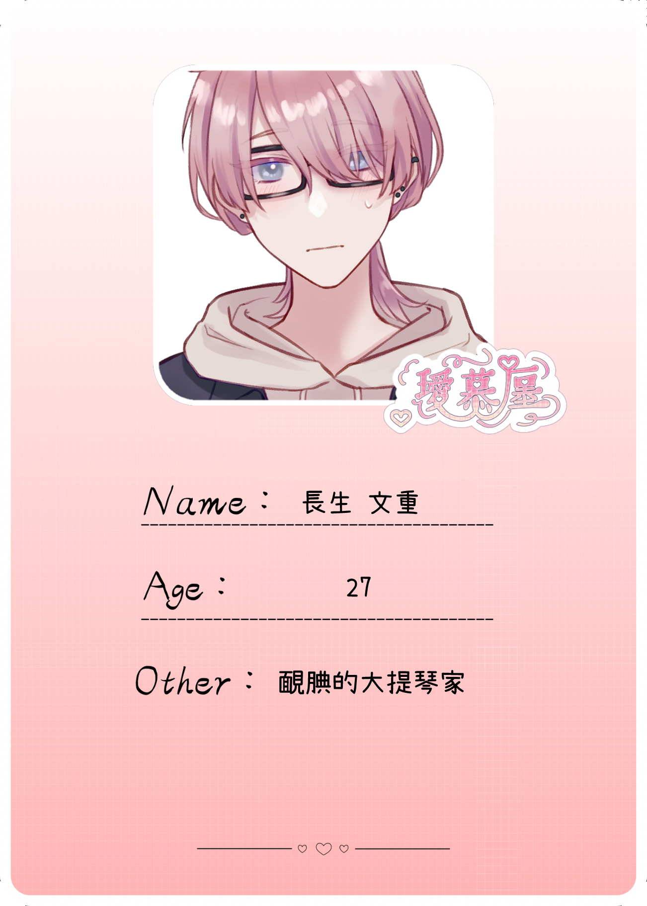 灰粉色頭髮及肩,銀灰色眼睛